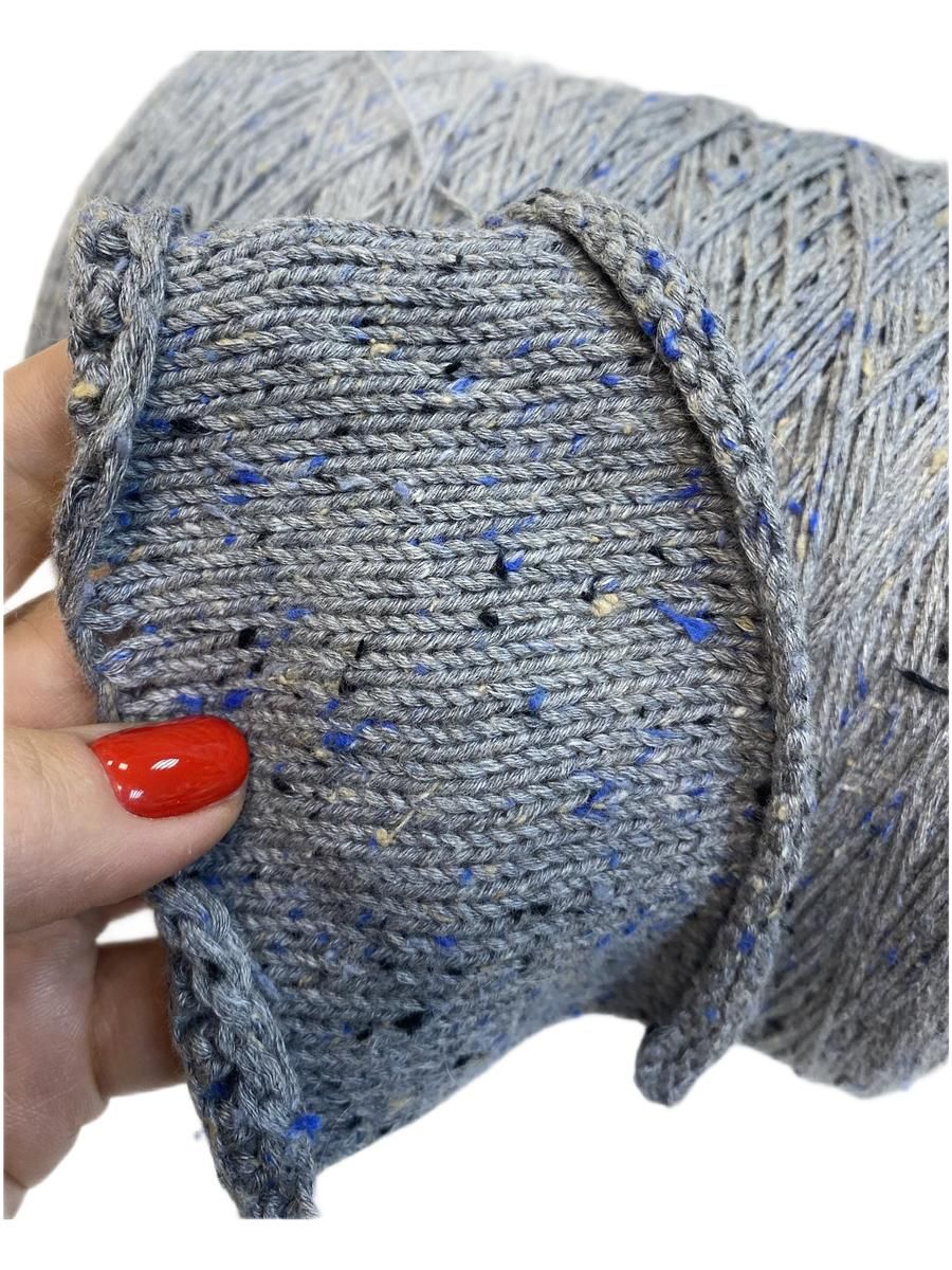 На основной (серой) нити находятся мелкие цветные вкрапления.(,синего, голубого, бежевого цветов)