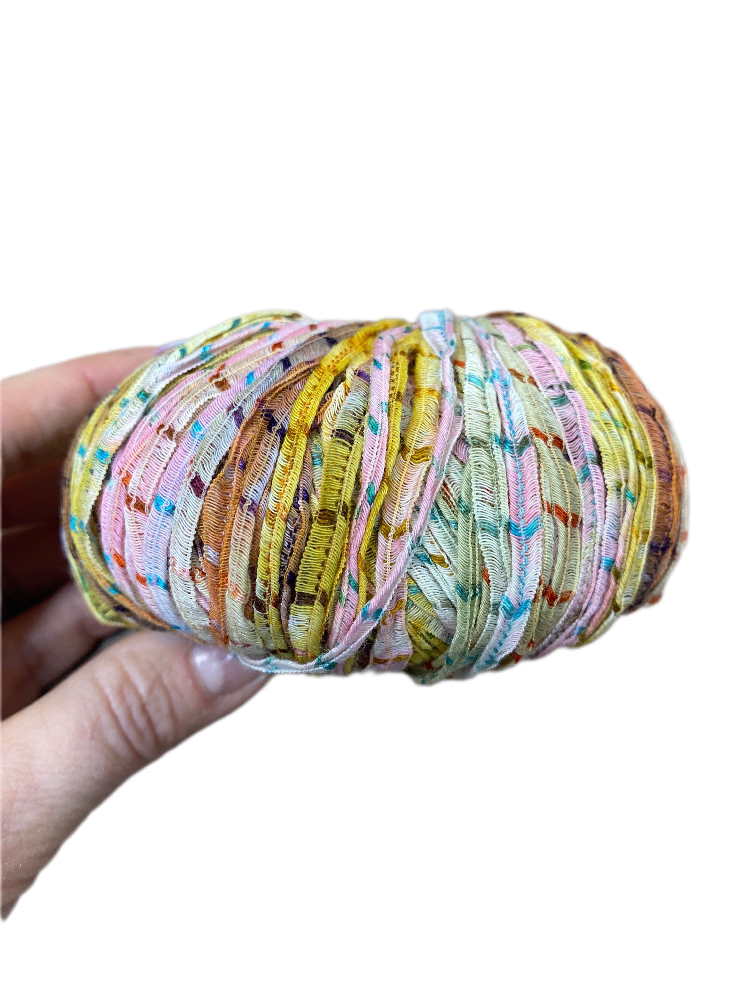 Фантазийная мягкая пластичная и воздушная ленточная пряжа средней толщины