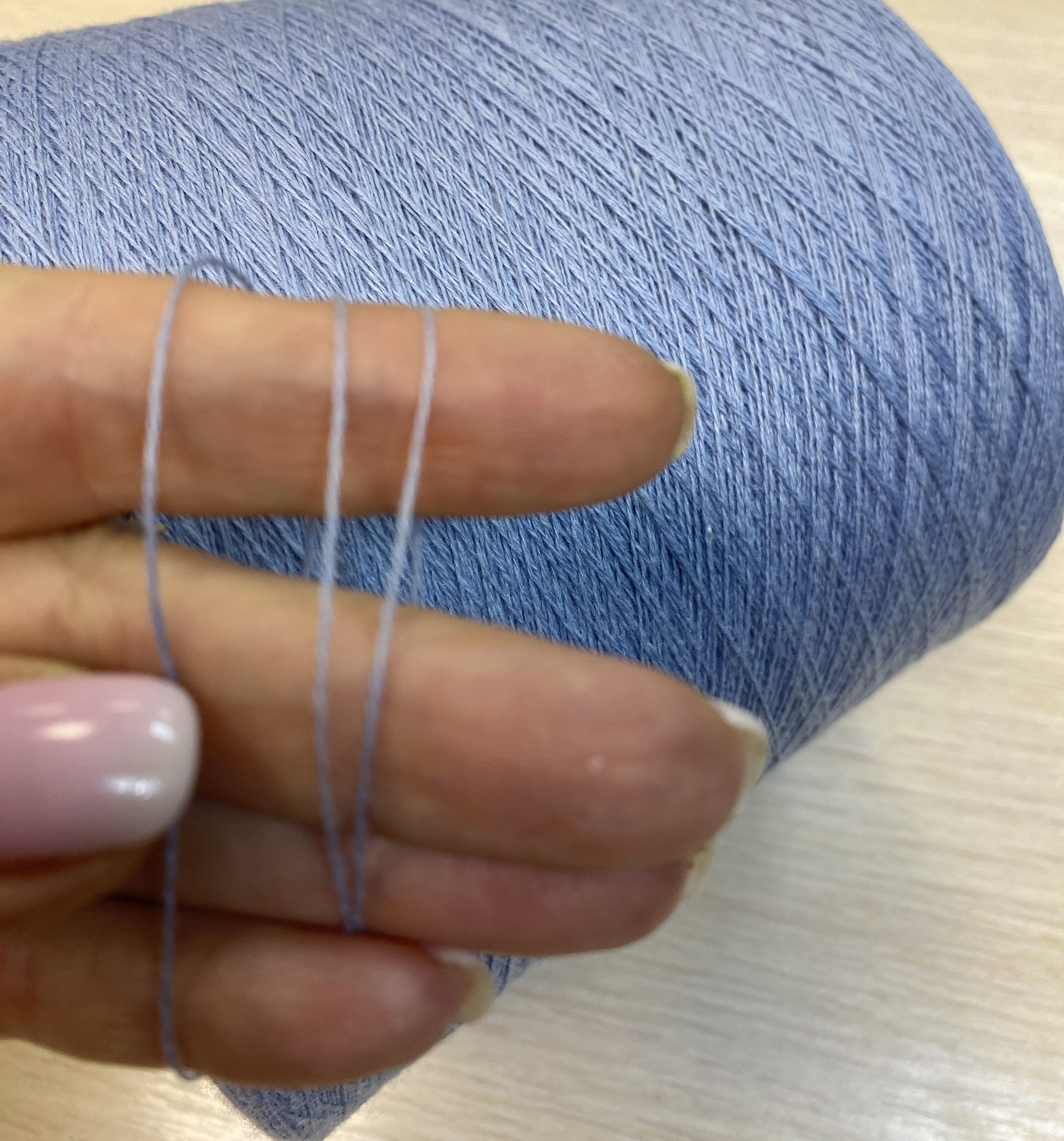5205120000 - Пряжа х/б, содержит 85 мас.% или более хлопковых волокон, не расфасованная для розн. продажи однониточная из волокон, не гребнечесаных, линейной плотности менее 714,29, но не менее 232,56 дтекса