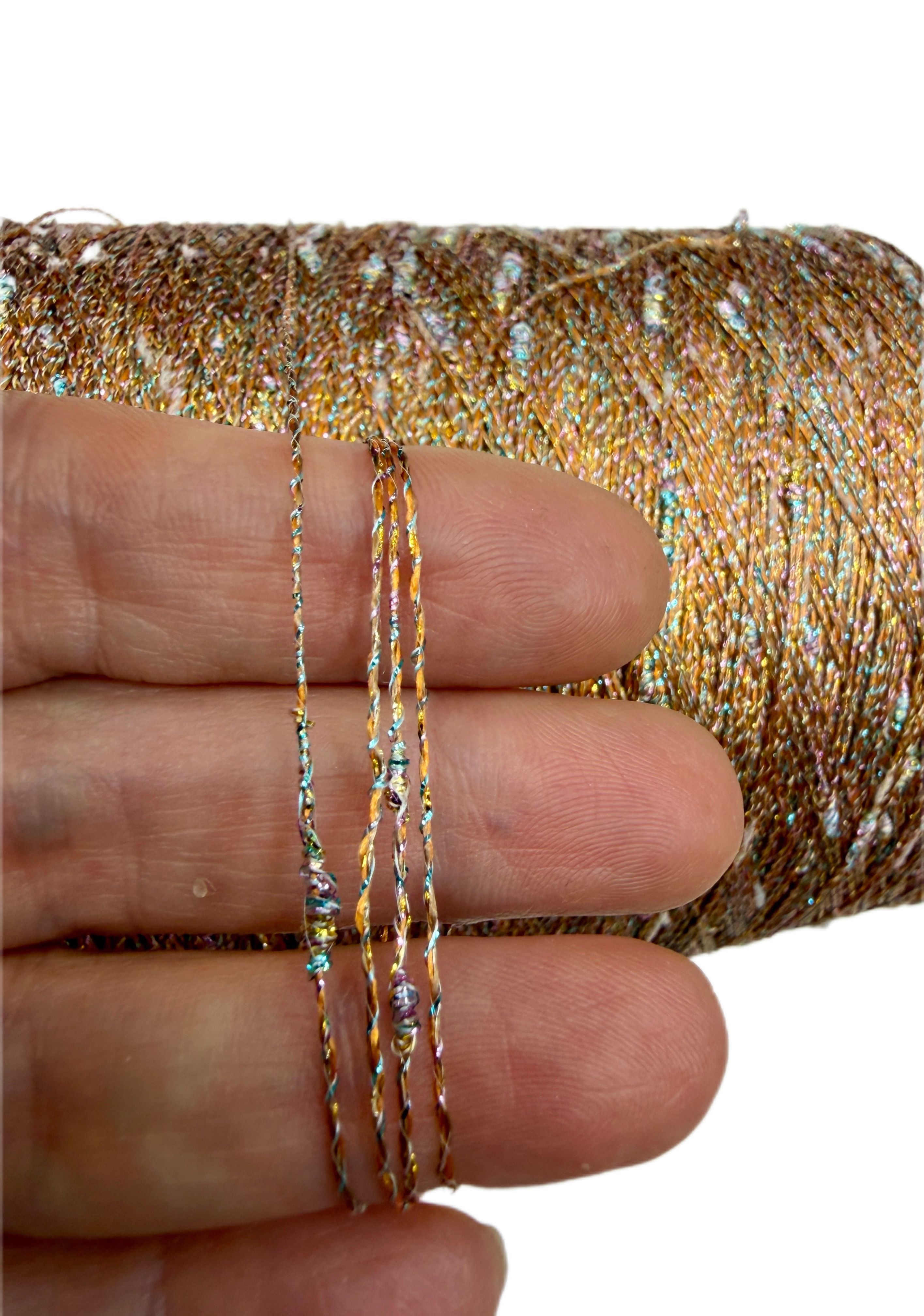 Итальянская вискоза с люрексом создает завораживающий блеск и переливчатый эффект! В тонкую нитку висозы и люрекса изредка нанизаны овальные мелкие шишечки!