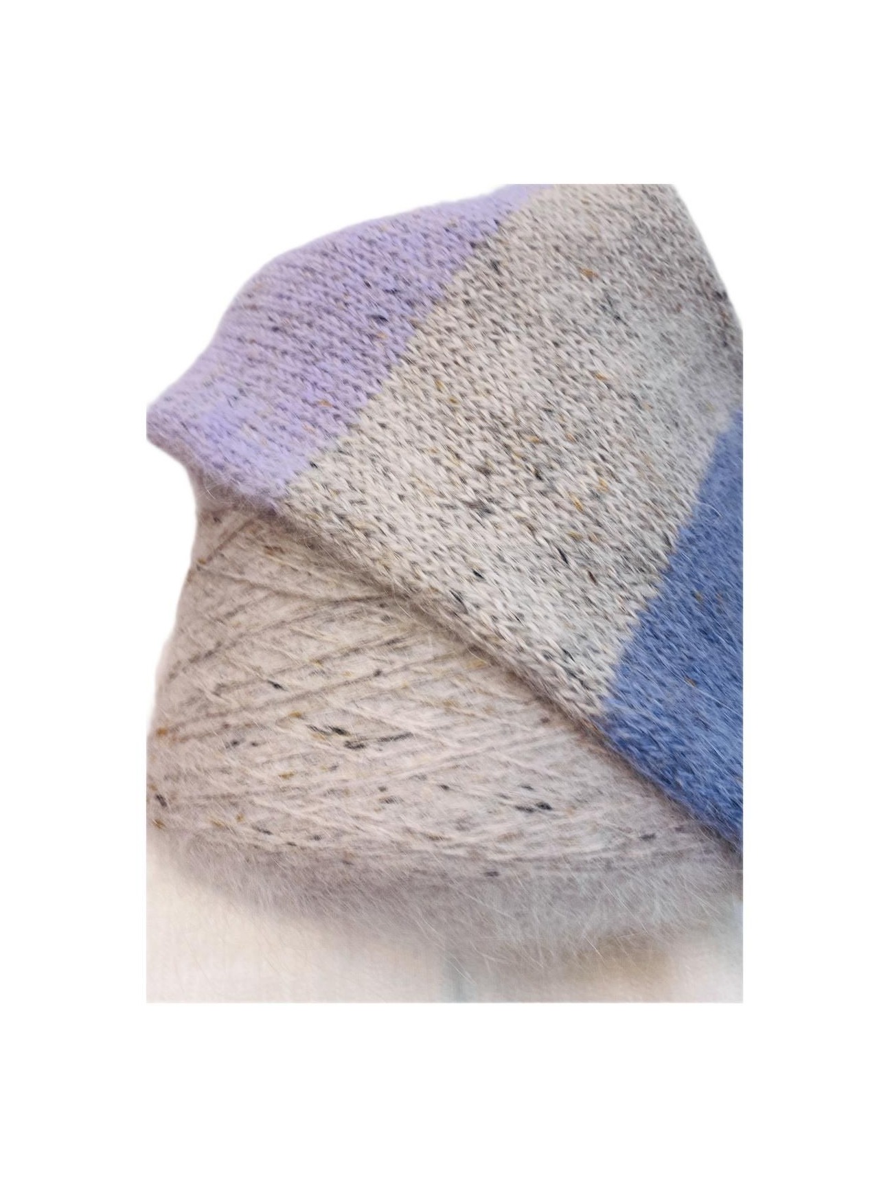 Пряжа очень мягкая на ощупь с характерным нежным ворсом , который получают из волосков и пуха ангорского кролика.