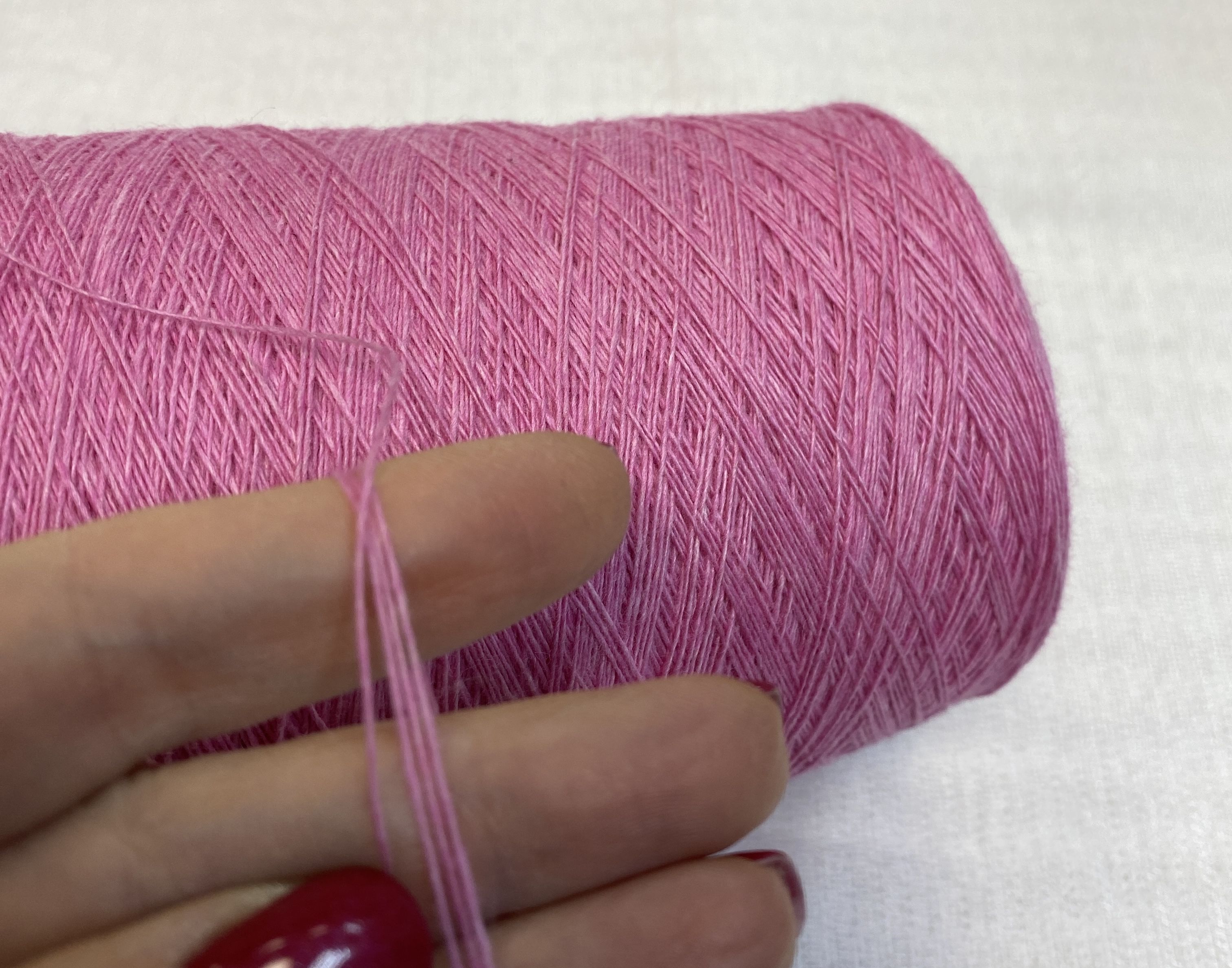Пряжа неколкая, без блеска, имеет насыщенный розовый классический цвет
