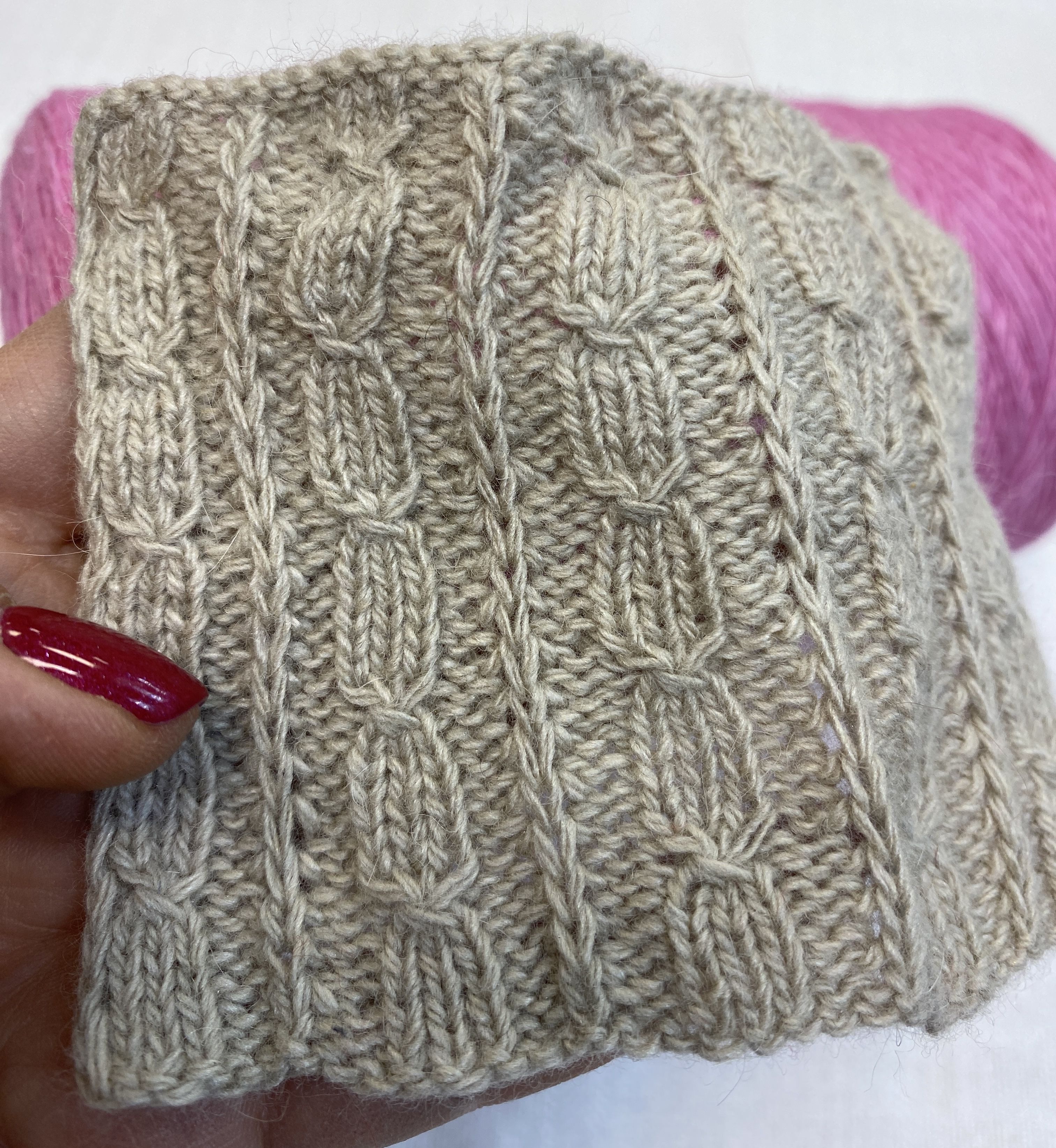 образец связан из этой же пряжи, но другого цвета в 2 нити