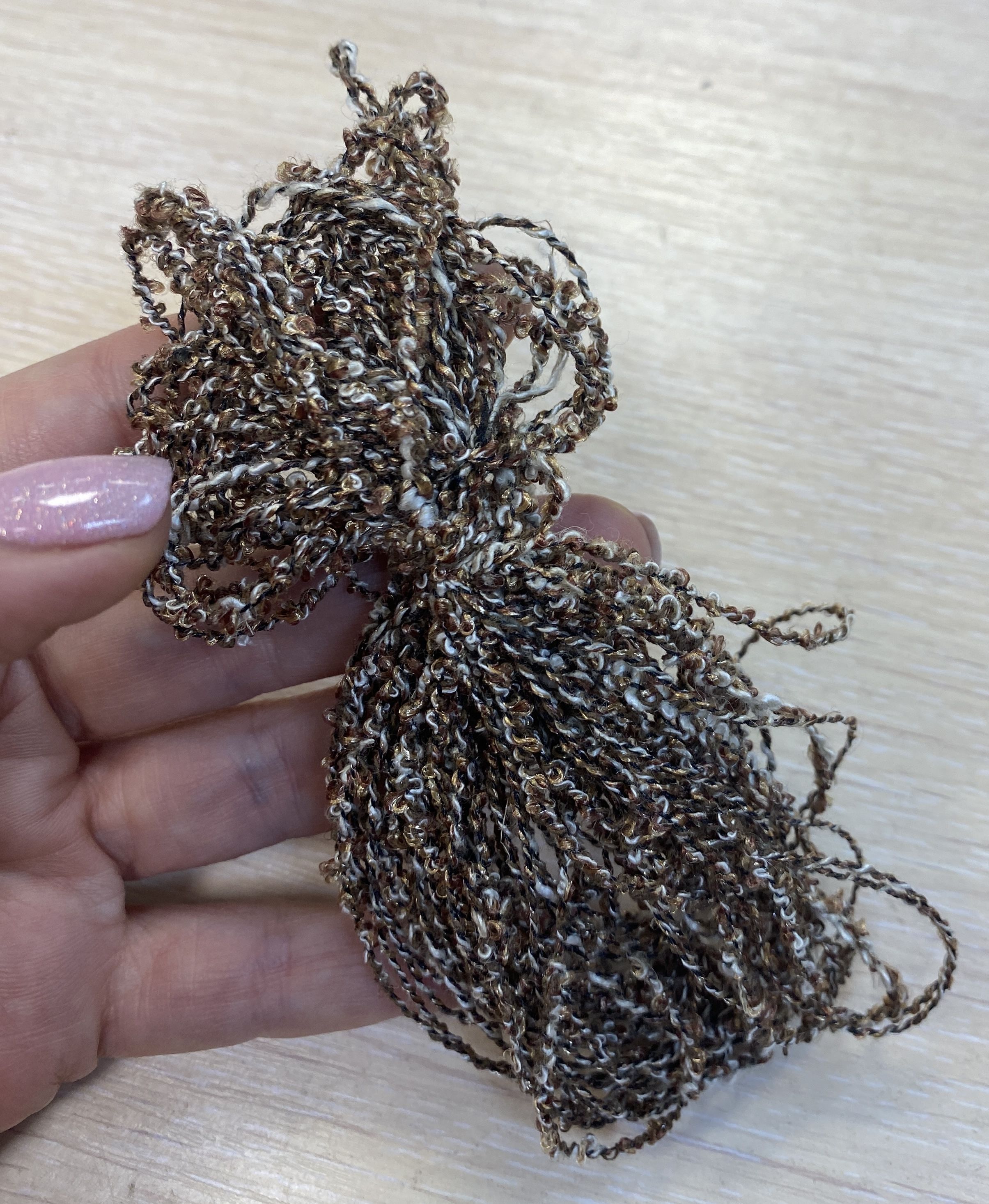 легкое букле с неоднородной толщиной нити и окраской в бежево-коричневых тонах