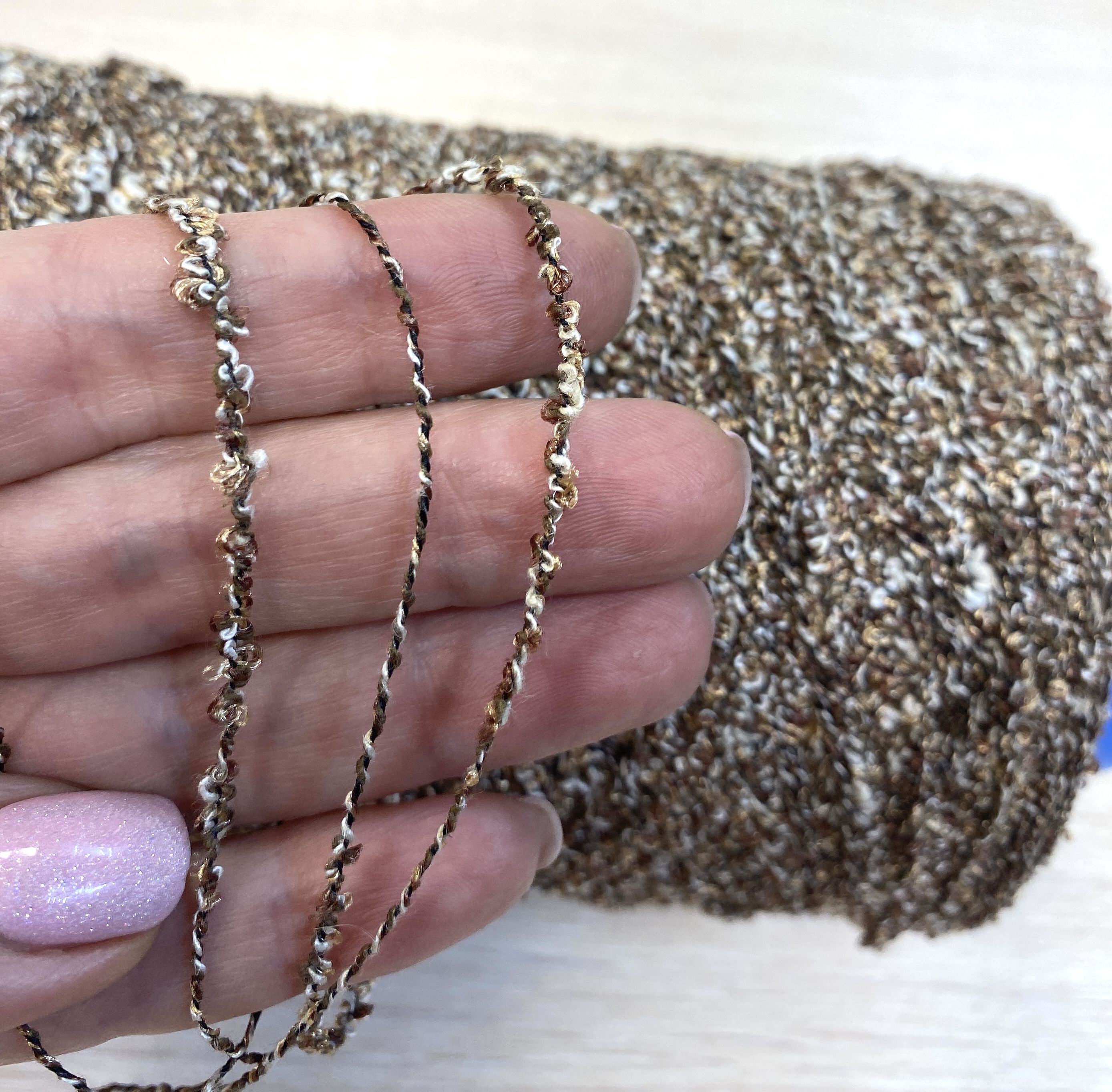 легкое букле с неоднородной толщиной нити и окраской в бежево-коричневых тонах