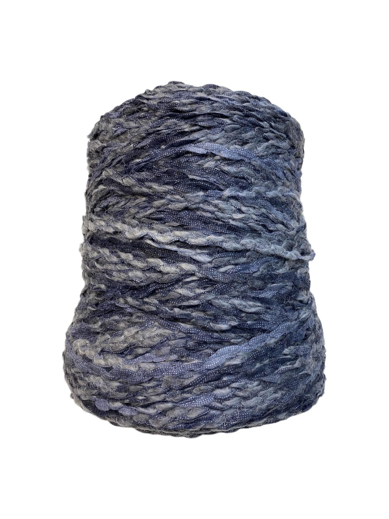 Пряжа имеет завораживающий меланжевый цвет в джинсовых тонах, ленточную фактуру и готова помочь придать по истине особенный вид любому проекту!
