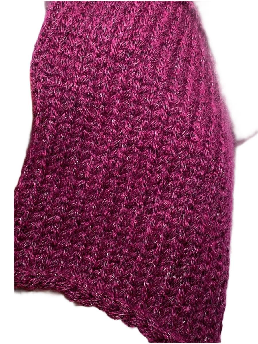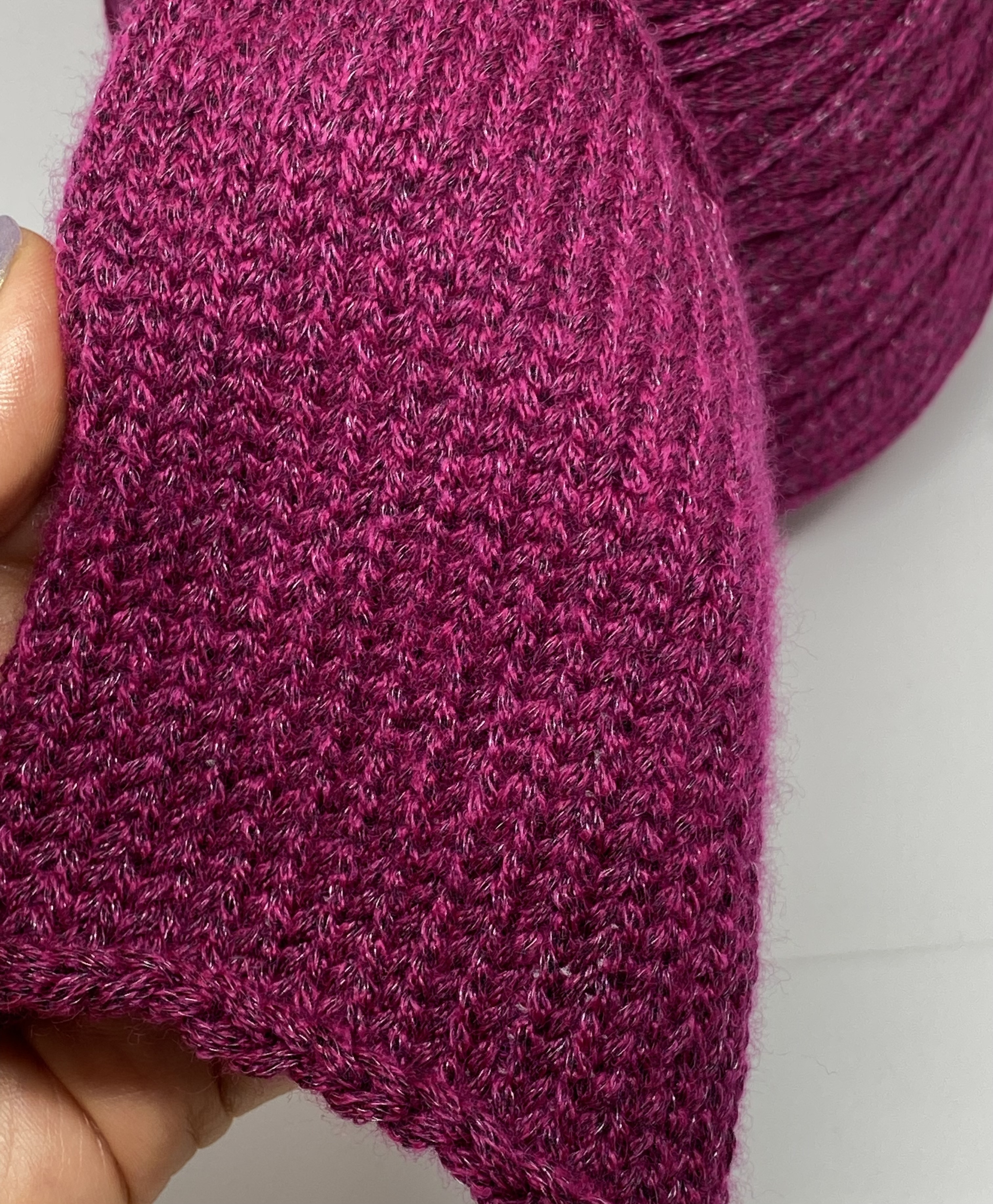Необыкновенно мягкая и не колкая!Ниточка сплетена в шнурок. Пряжа имеет небольшой полиамидный блеск( который создает ощущение нарядности), после ВТО это блеск прикрывается легким пушком и становится едва уловимым.