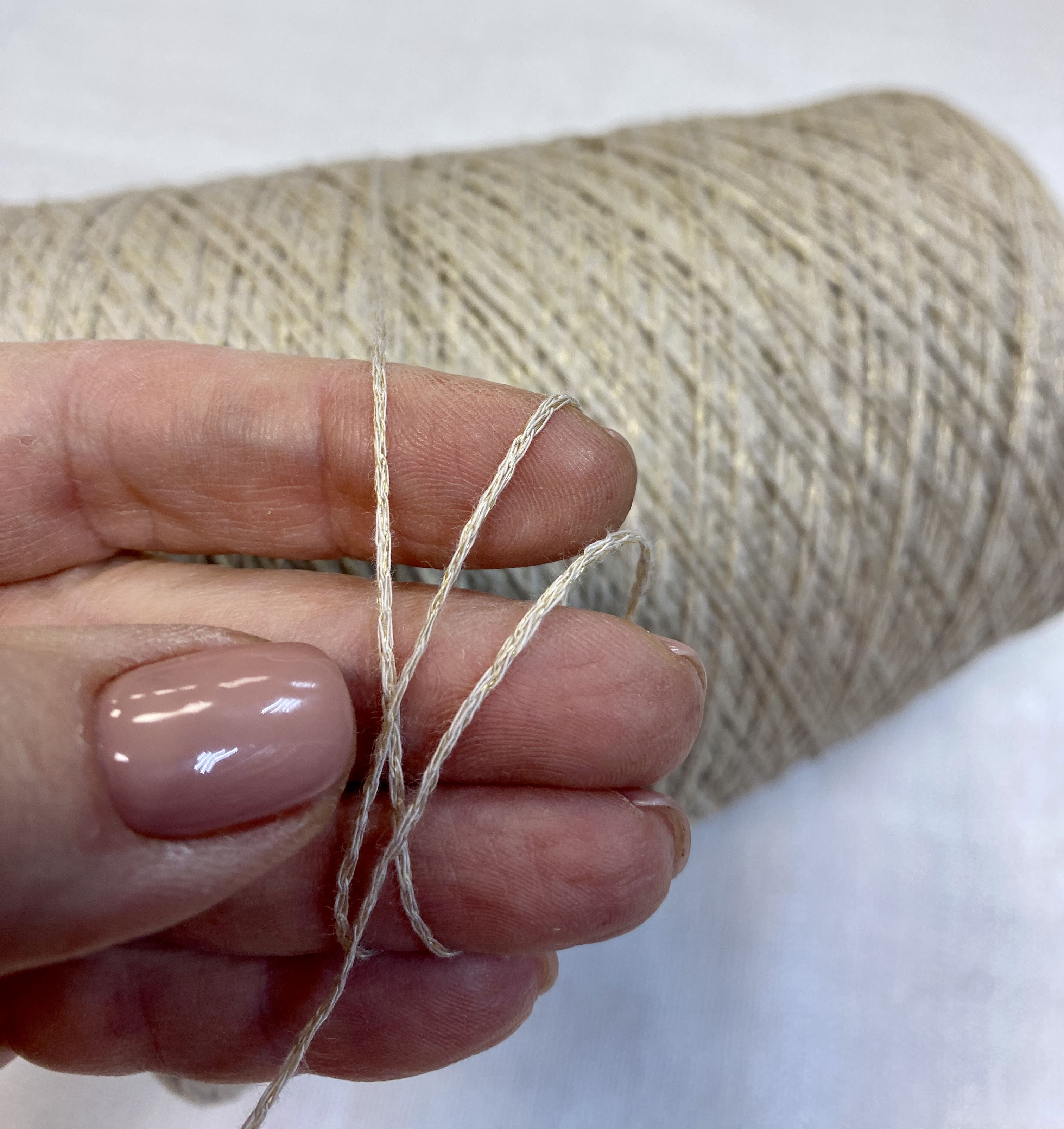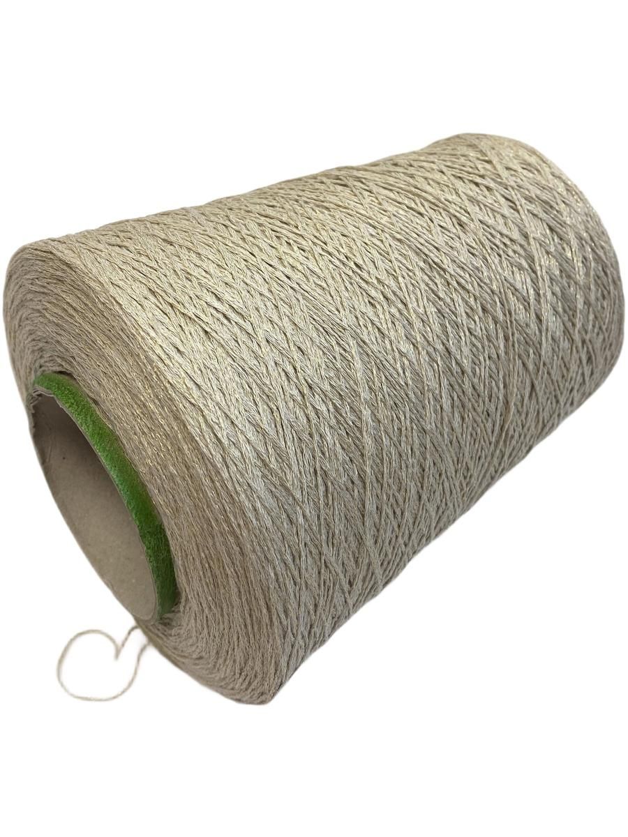 Цвет золотисто-бежевый с полиамидной ниткой, которая обеспечивает деликатное мерцание пряжи