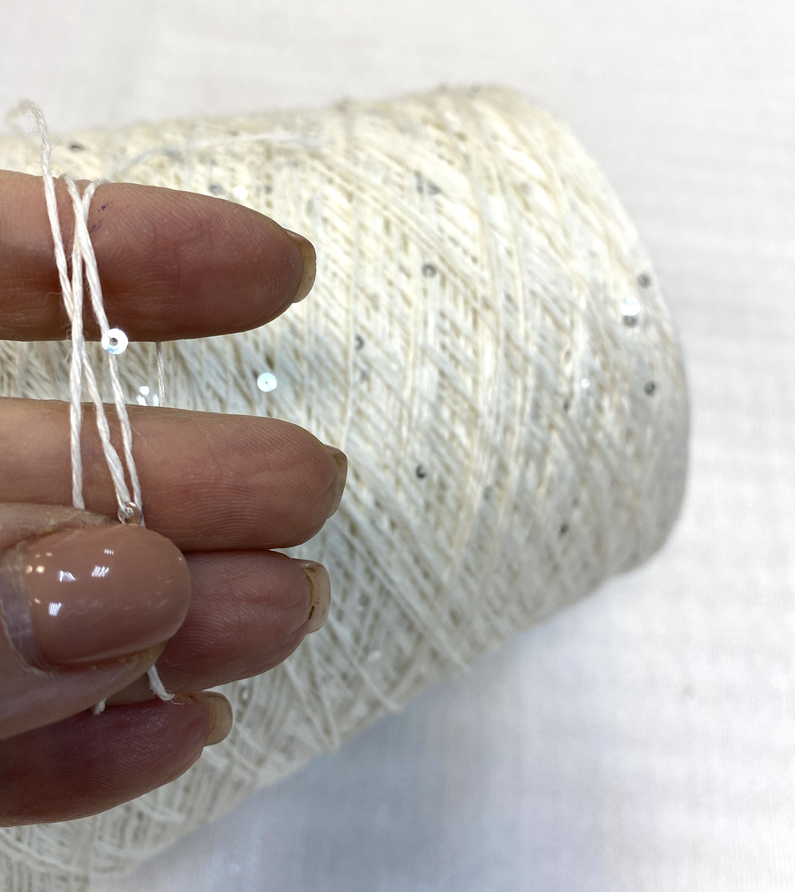 Нитка равномерно скручена и имеет одинаковую толщину, украшена деликатными пайетками