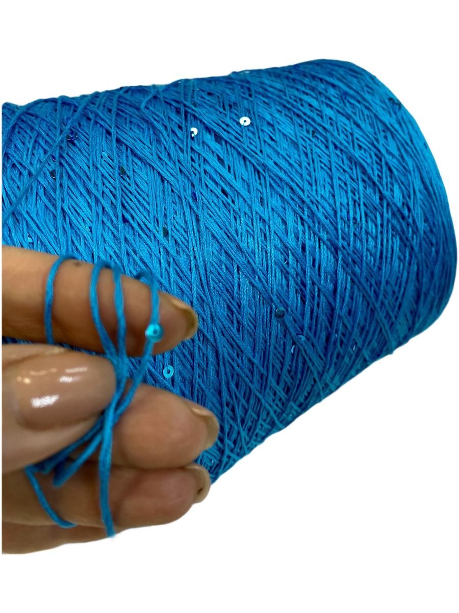 Нарядный ярко-бирюзовый цвет с деликатными мелкими (3мм), едва мерцающими пайетками в цвет пряжи