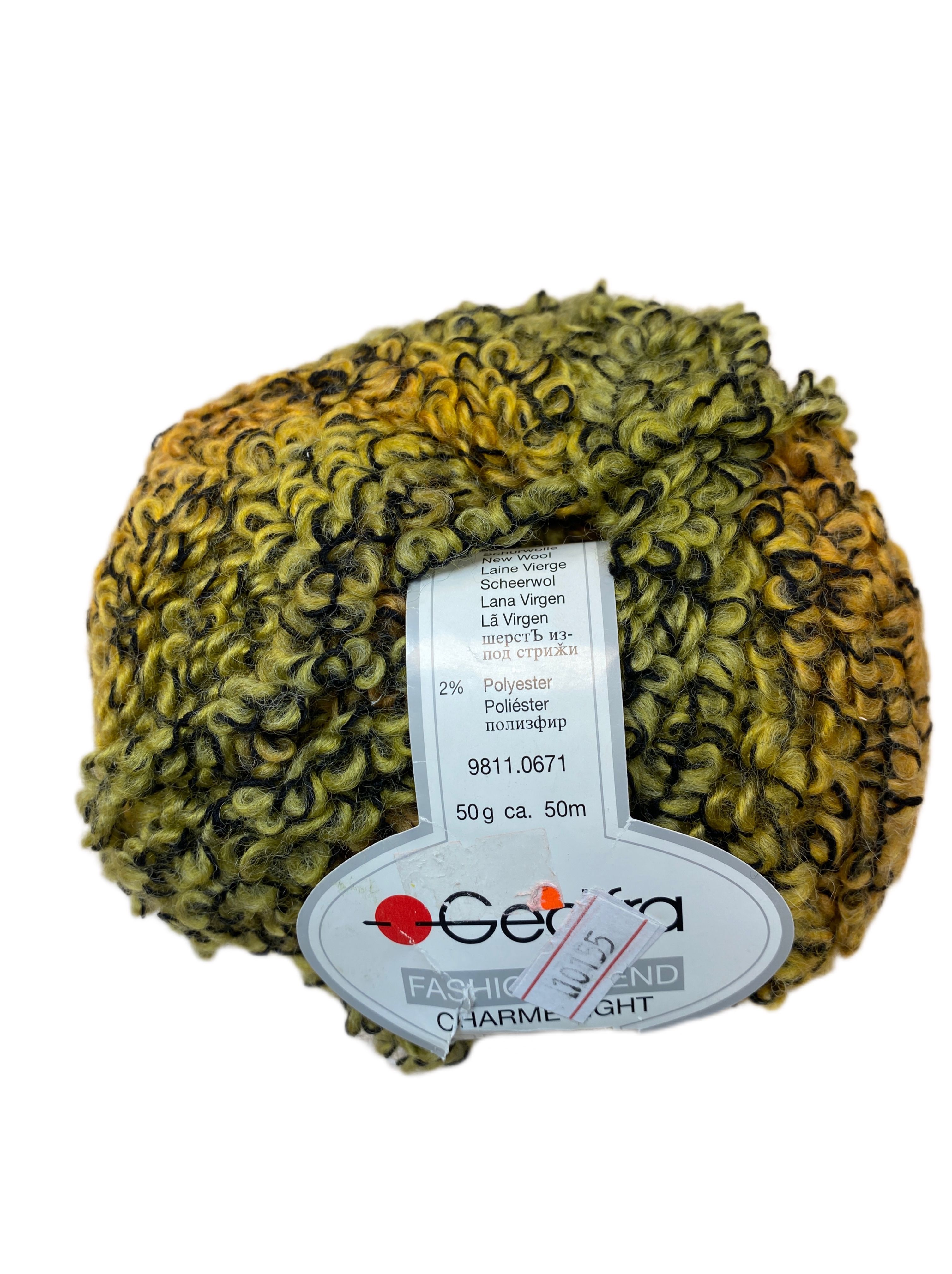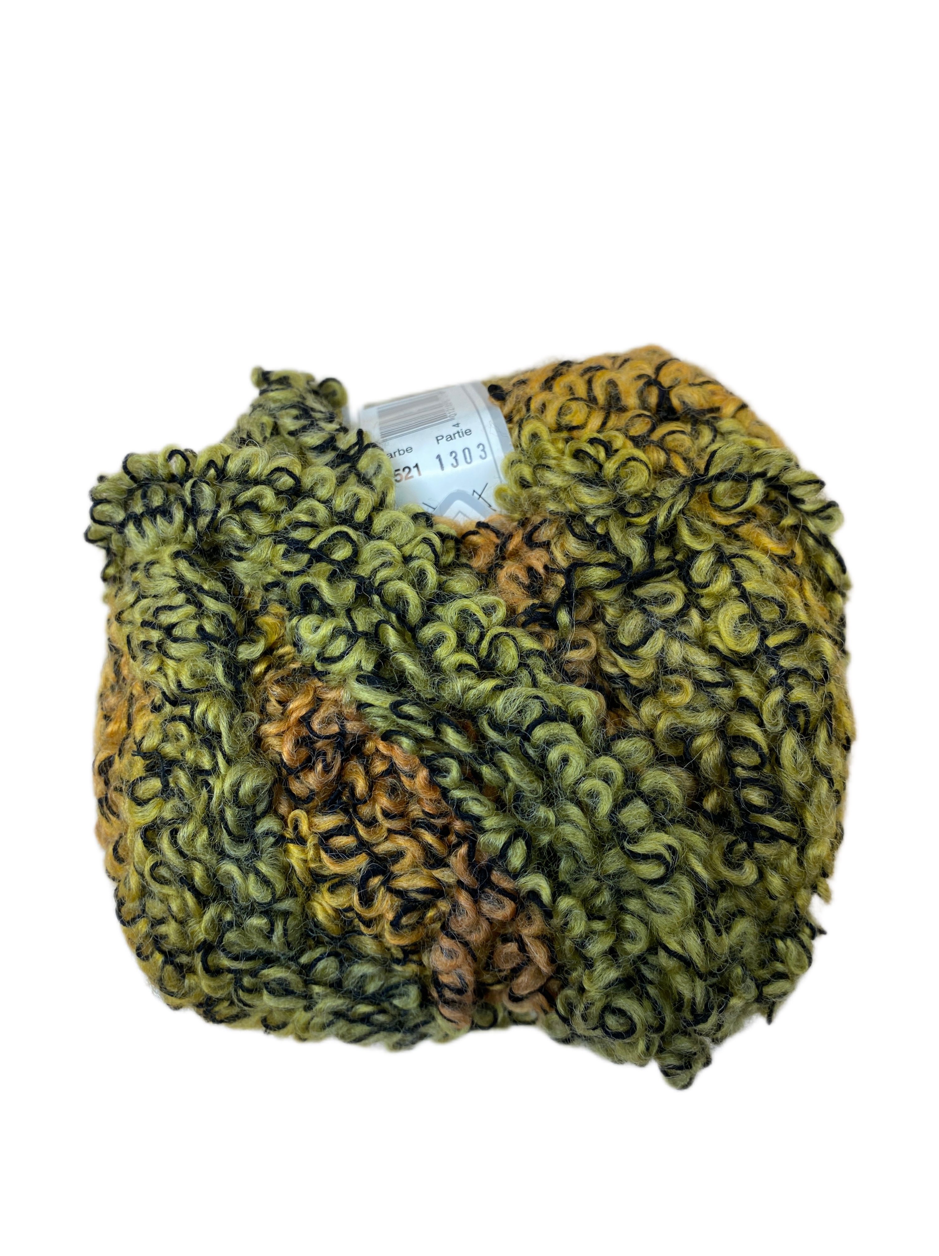секционный окрас - плавный переход цвета от приятного осеннего желтого через янтарный цвет и до опалого зеленого (мы бы назвали пряжу ОСЕНЬ)
