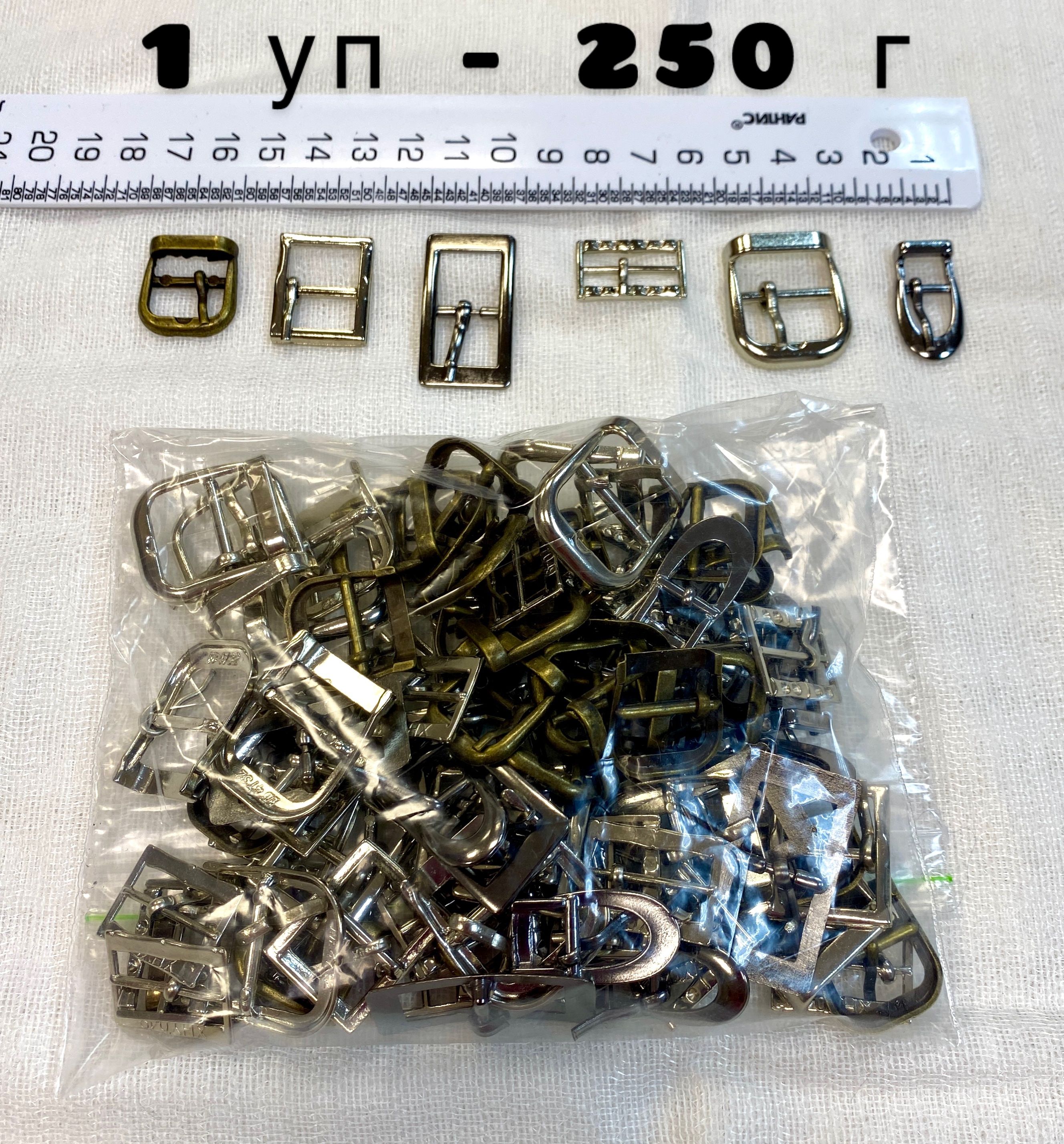 Набор металлических пряжек различных размеров, модификаций и цветов, Общий вес упаковки 250 г (приблизительно 70 шт/ себестоимость одной пряжки 6-8 руб
