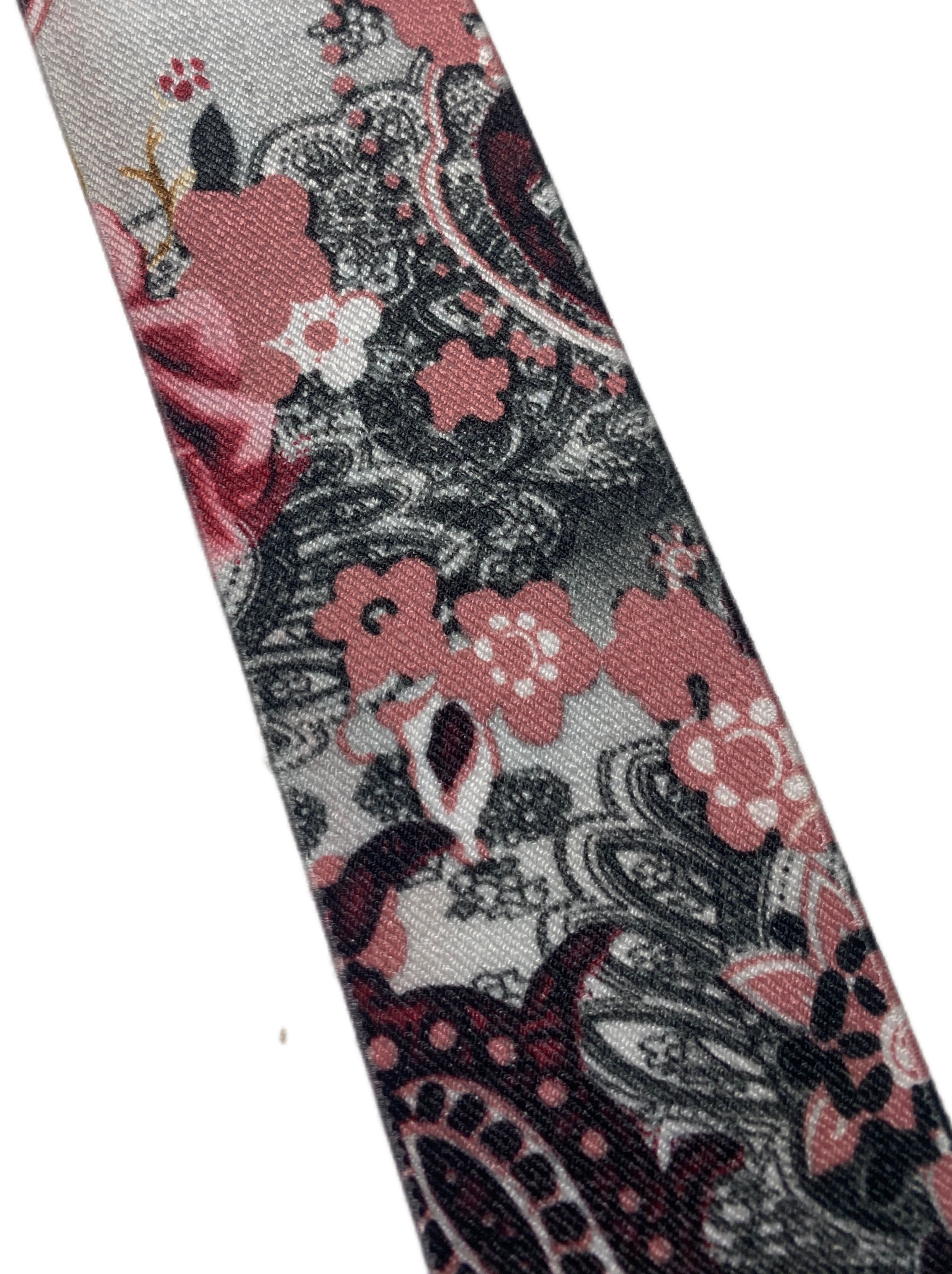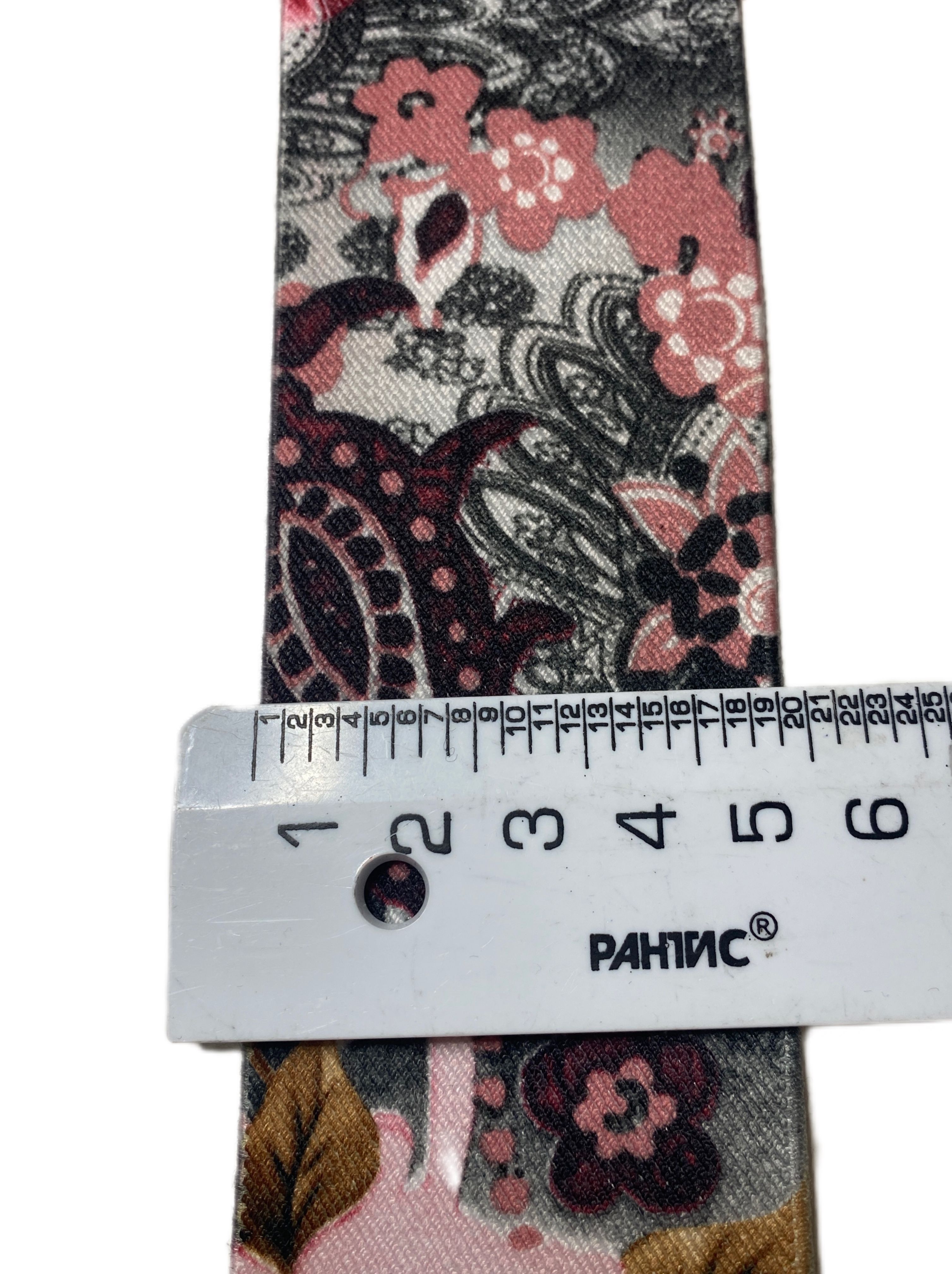 Широкая цветная резинка цветочный принт в серо-розовых тонах