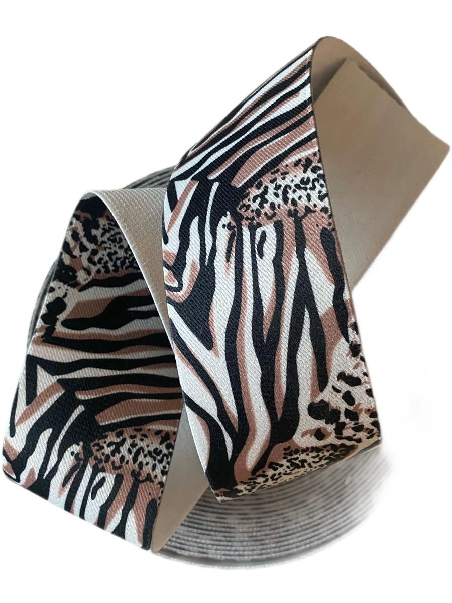 Широкая цветная резинка леопардовый принт в черно-коричневых тонах