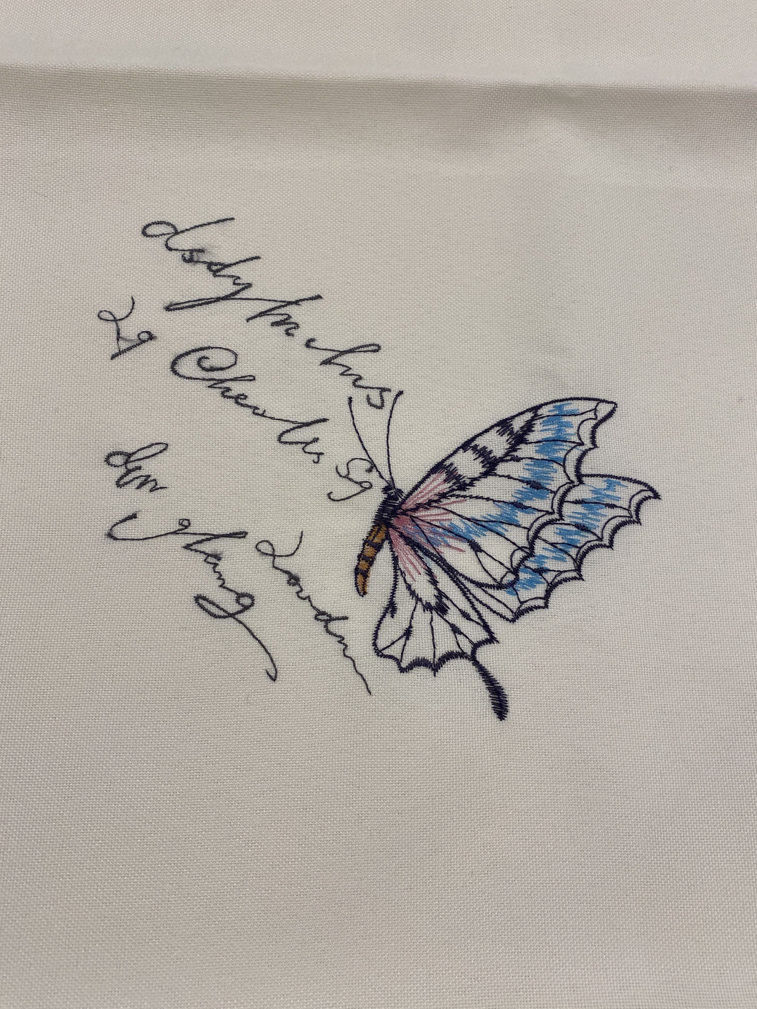 цвет на белом фоне вышиты бабочки в пурпурно-серых тонах очень элегантно