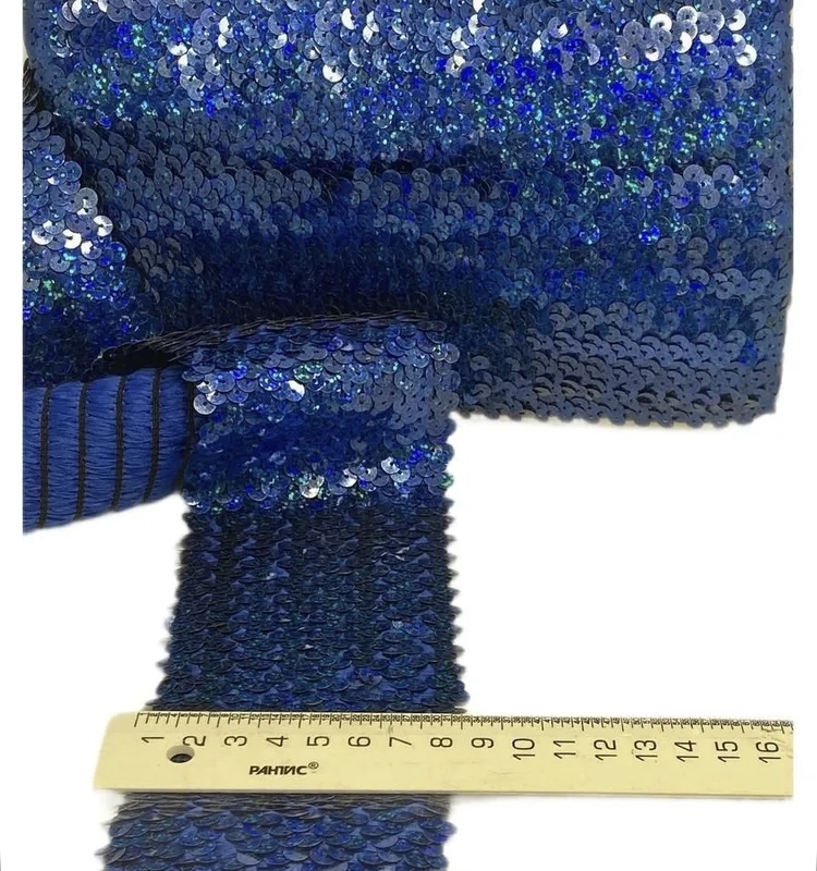 Тесьма эластичная пайетки ш-7см синий 1 м