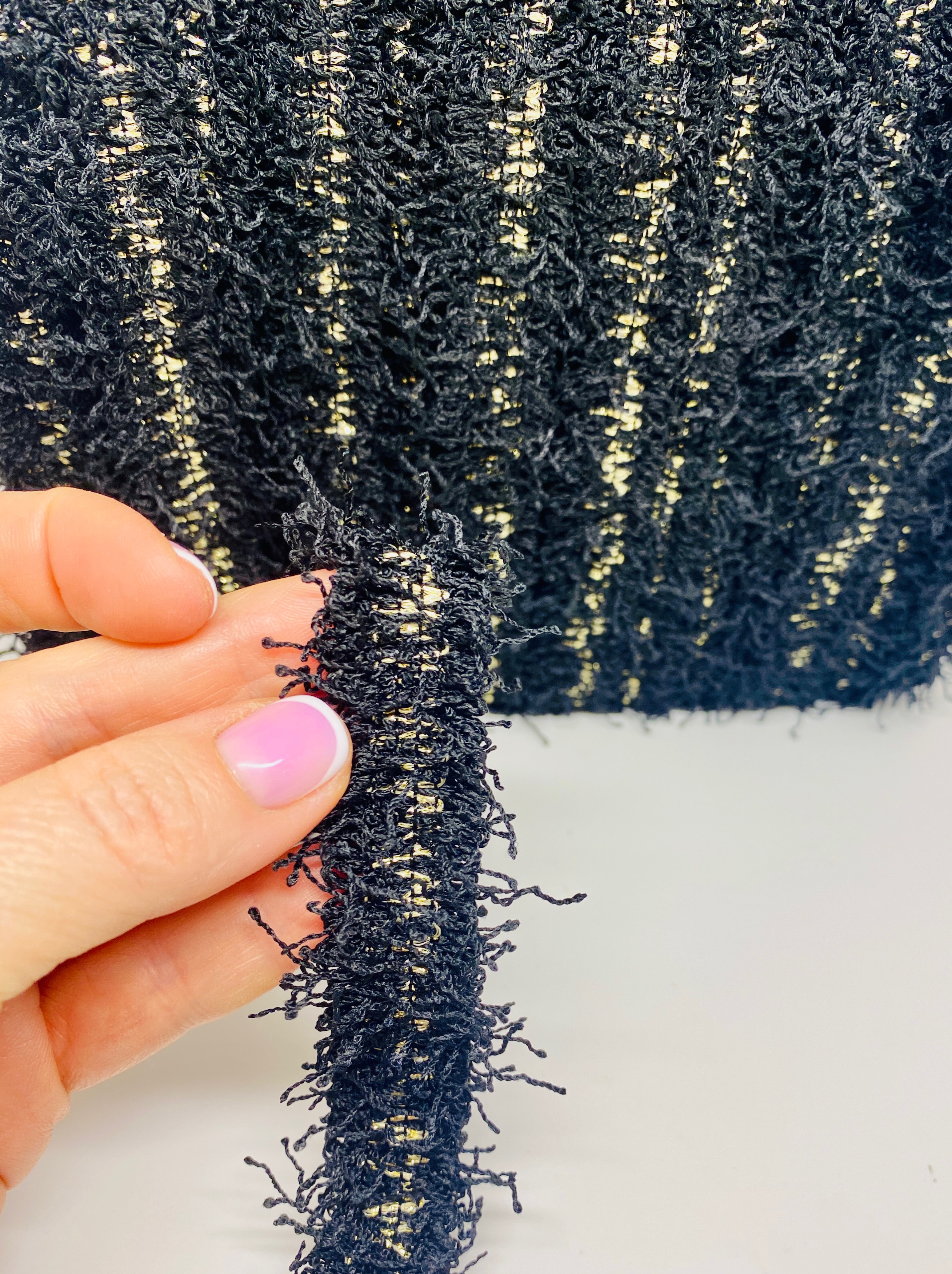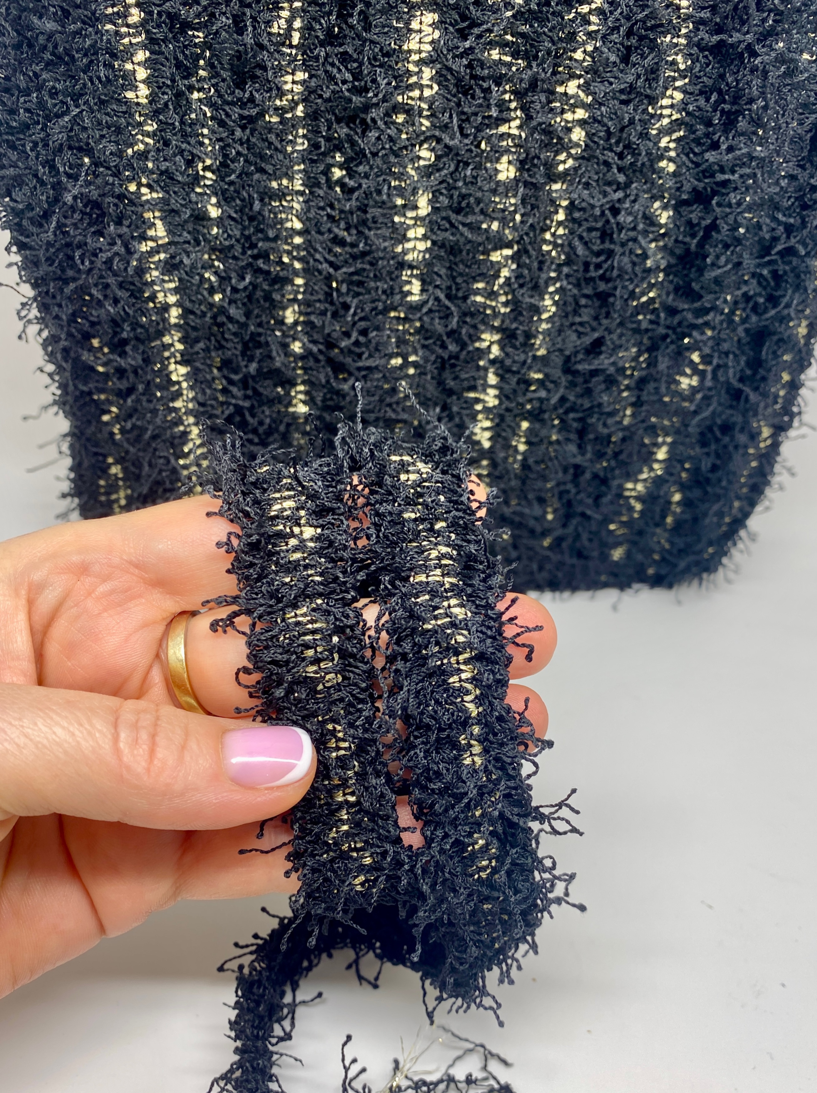 Мягкая декоративная тесьма травка из текстиля с прошитолй твидовой золотистой нитью — идеальный вариант для оформления одежды, аксессуаров и интерьерных проектов.