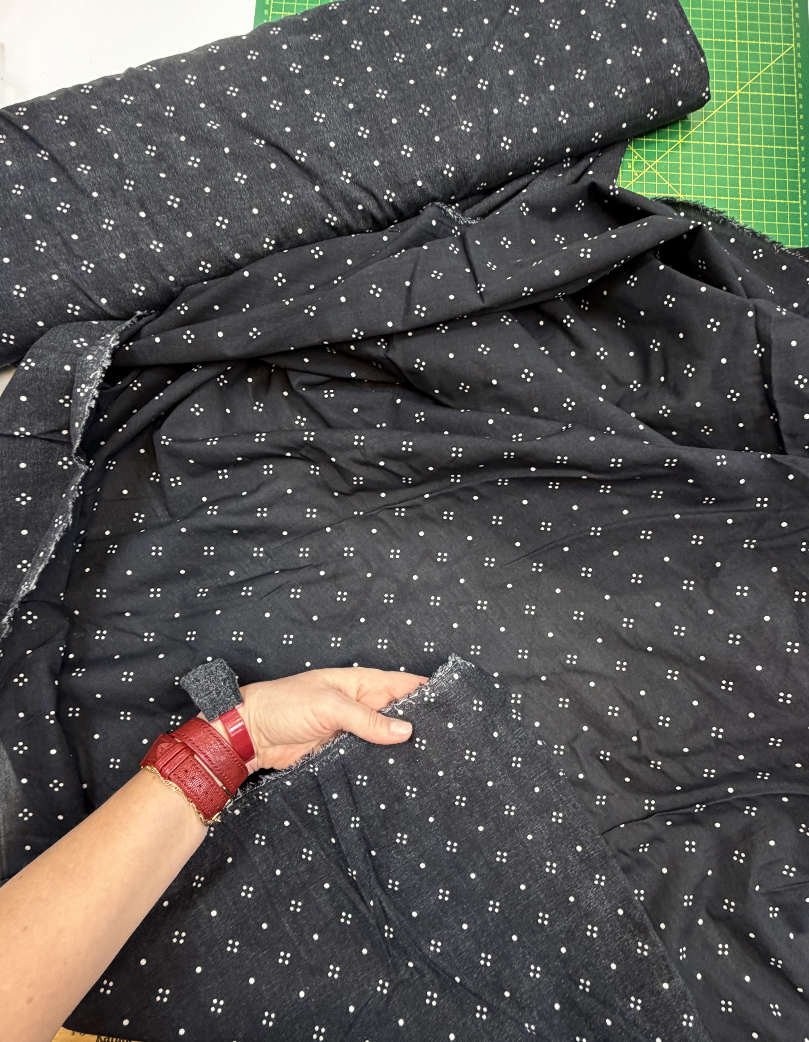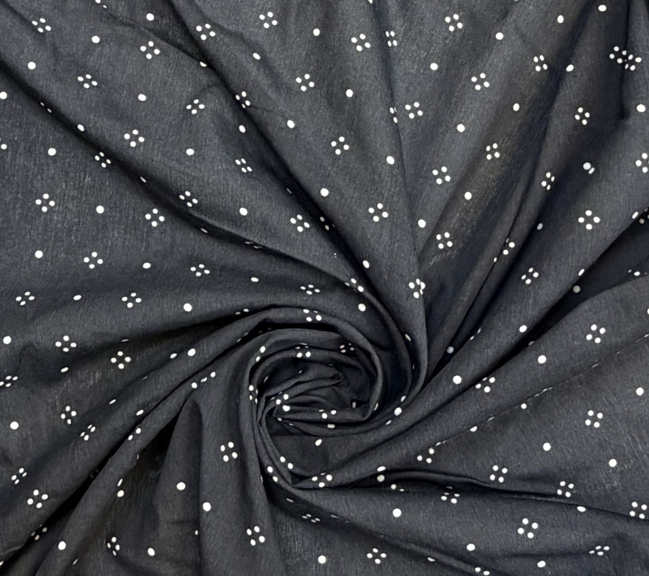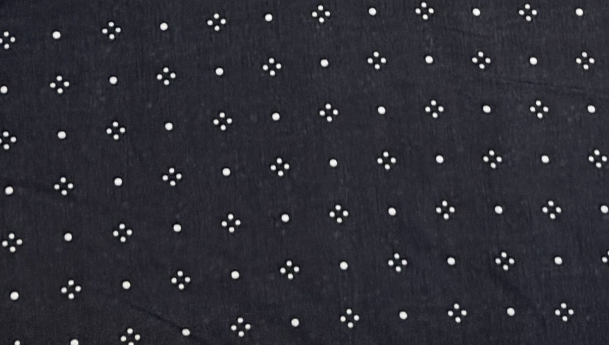 принт - на черном фоне - мелкие точки белого цвета в геометрическом узоре, что позволяет изделию быть аккуратным , стильным и актуальным вне времени.
