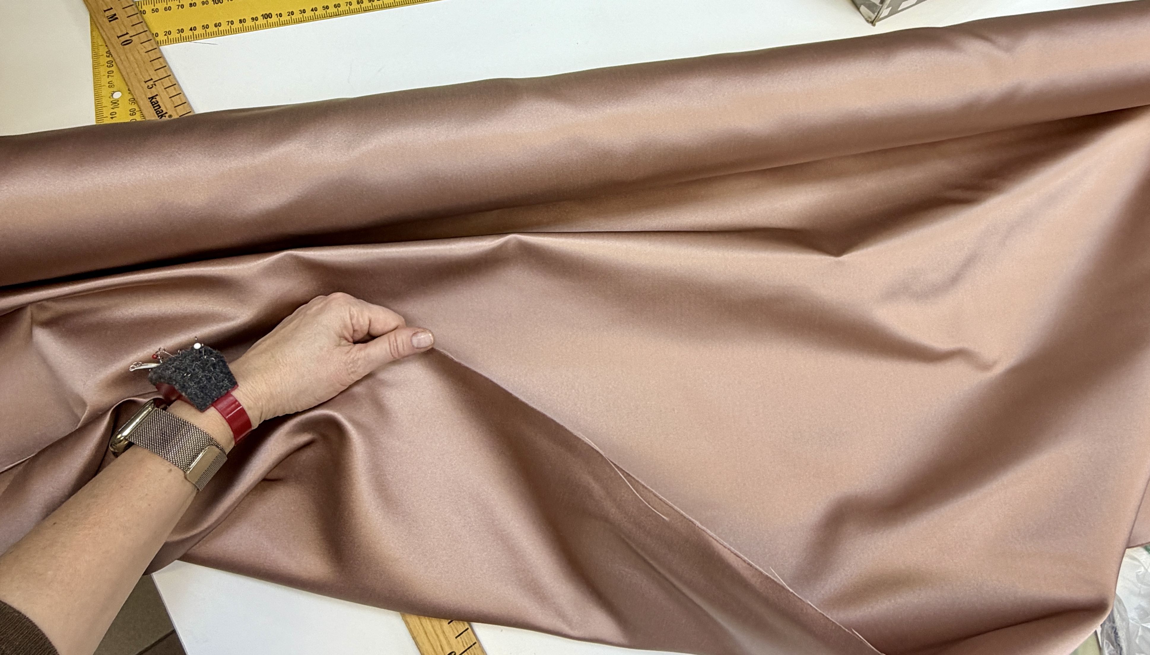Раскрой. Из‑за гладкости материал может скользить, поэтому фиксируйте выкройку булавками или грузиками.