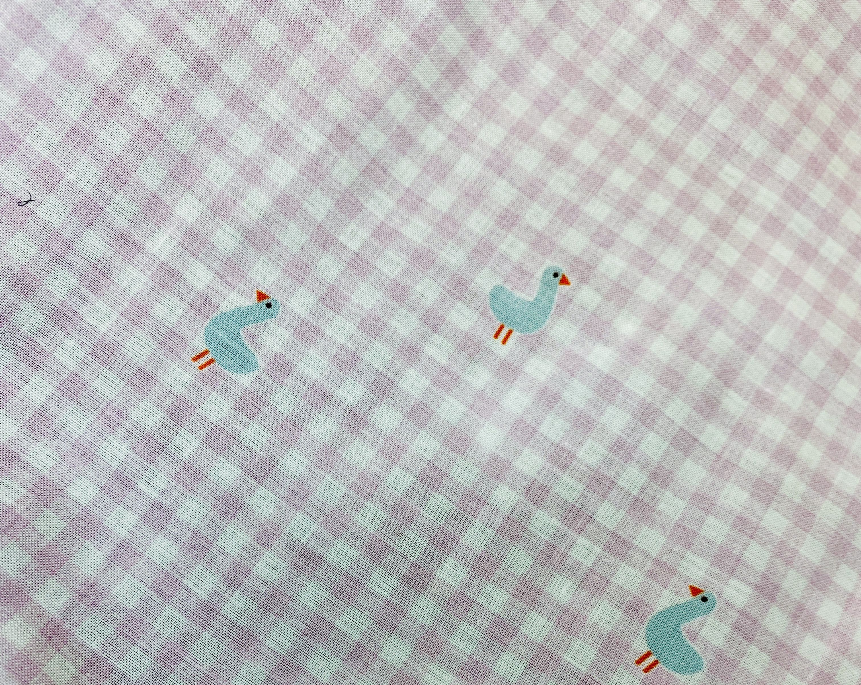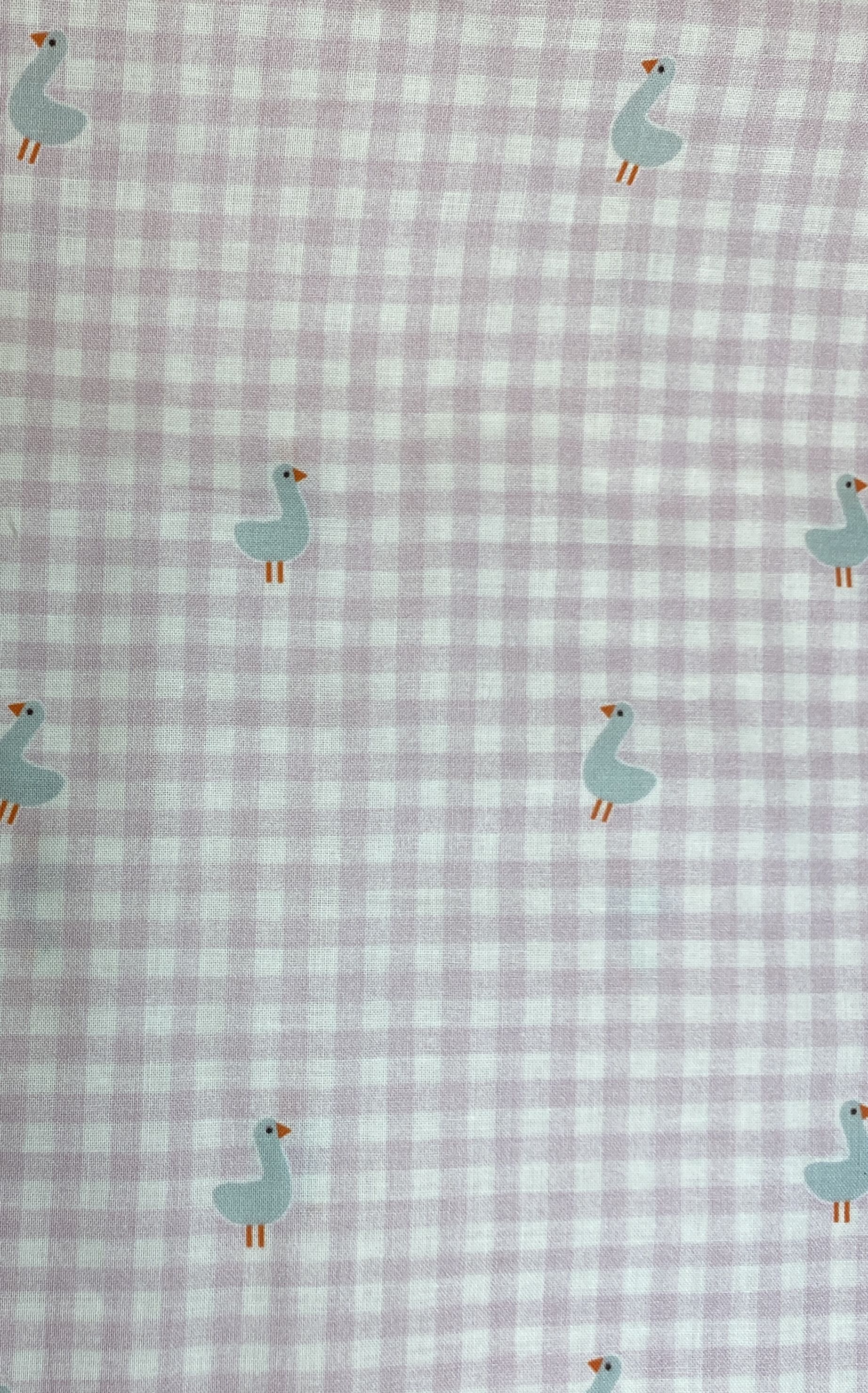 маленькие гусята голубого цвета на мелкой клеточке розвого и белого цветов - это прямо элегантная классика