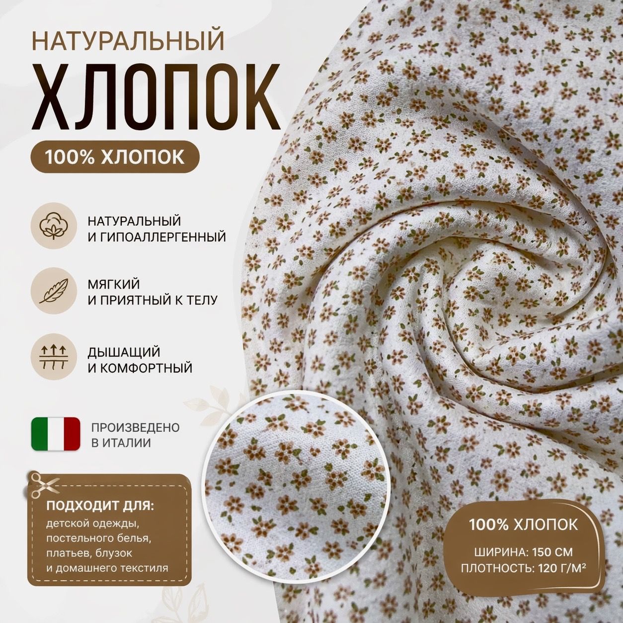 Ткань хлопок 100% натуральный, мелкий цветочный принт!