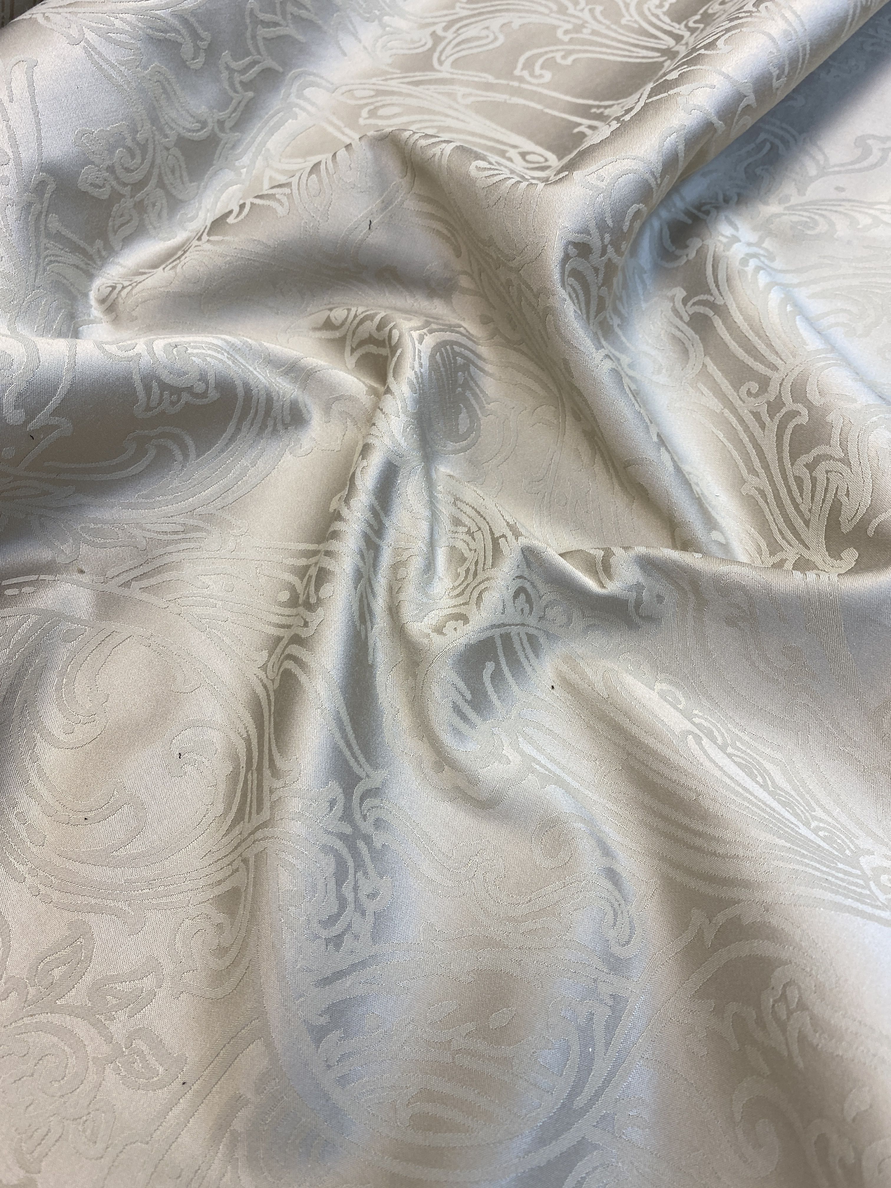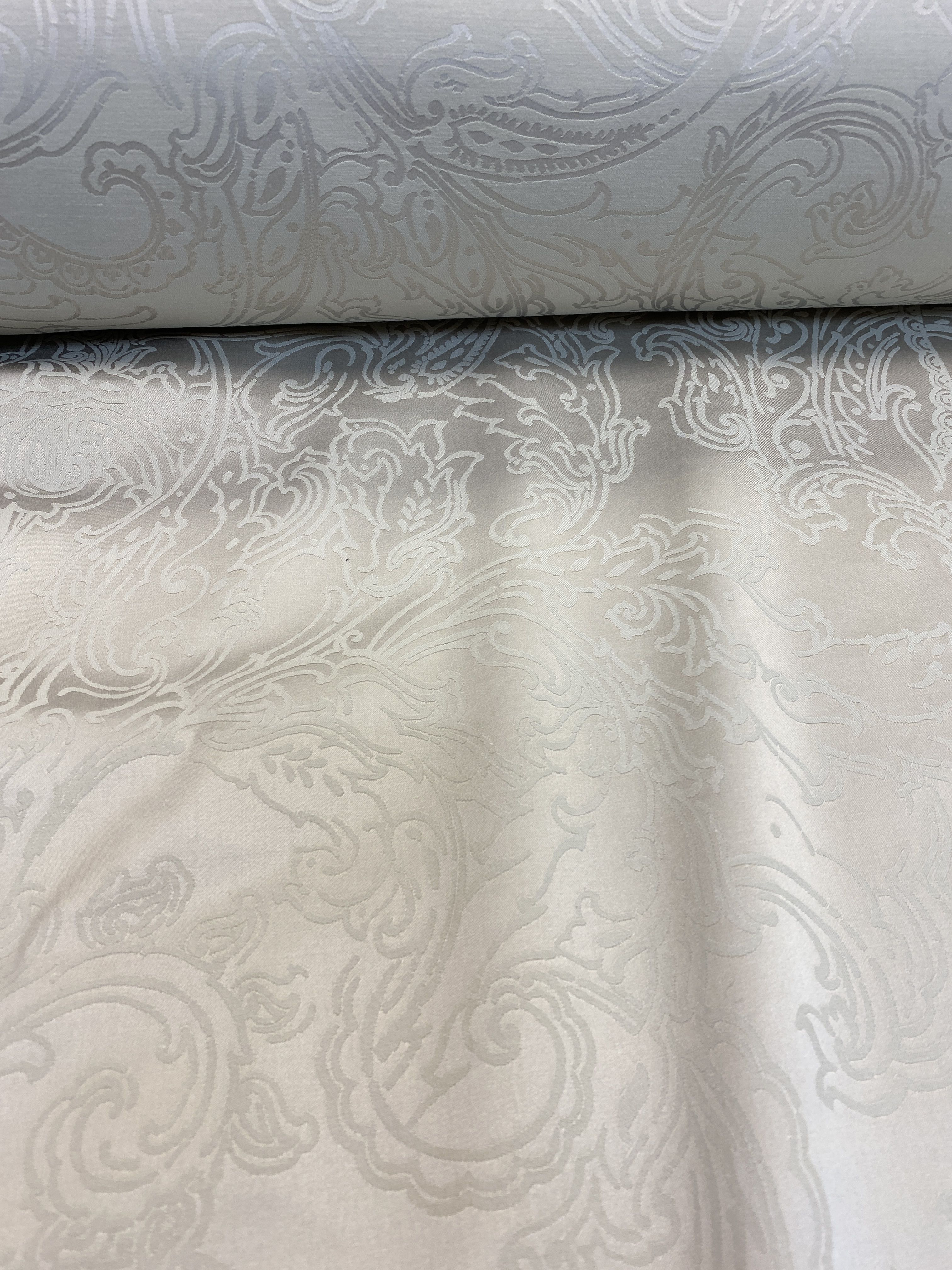 Рисунок на данной ткани представлен вензелями умеренной плотности, что отлично будет смотреться в юбках, платьях, декоративных элементах.