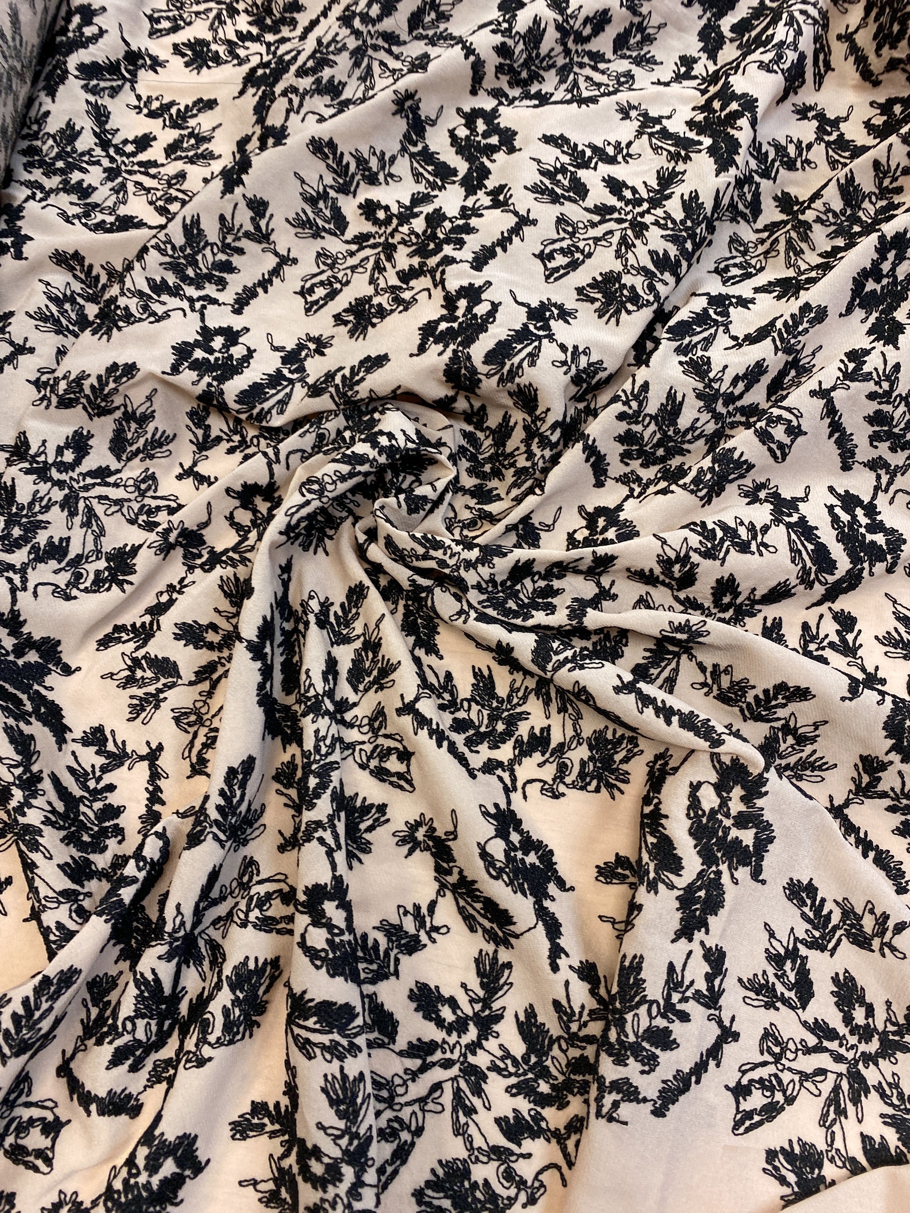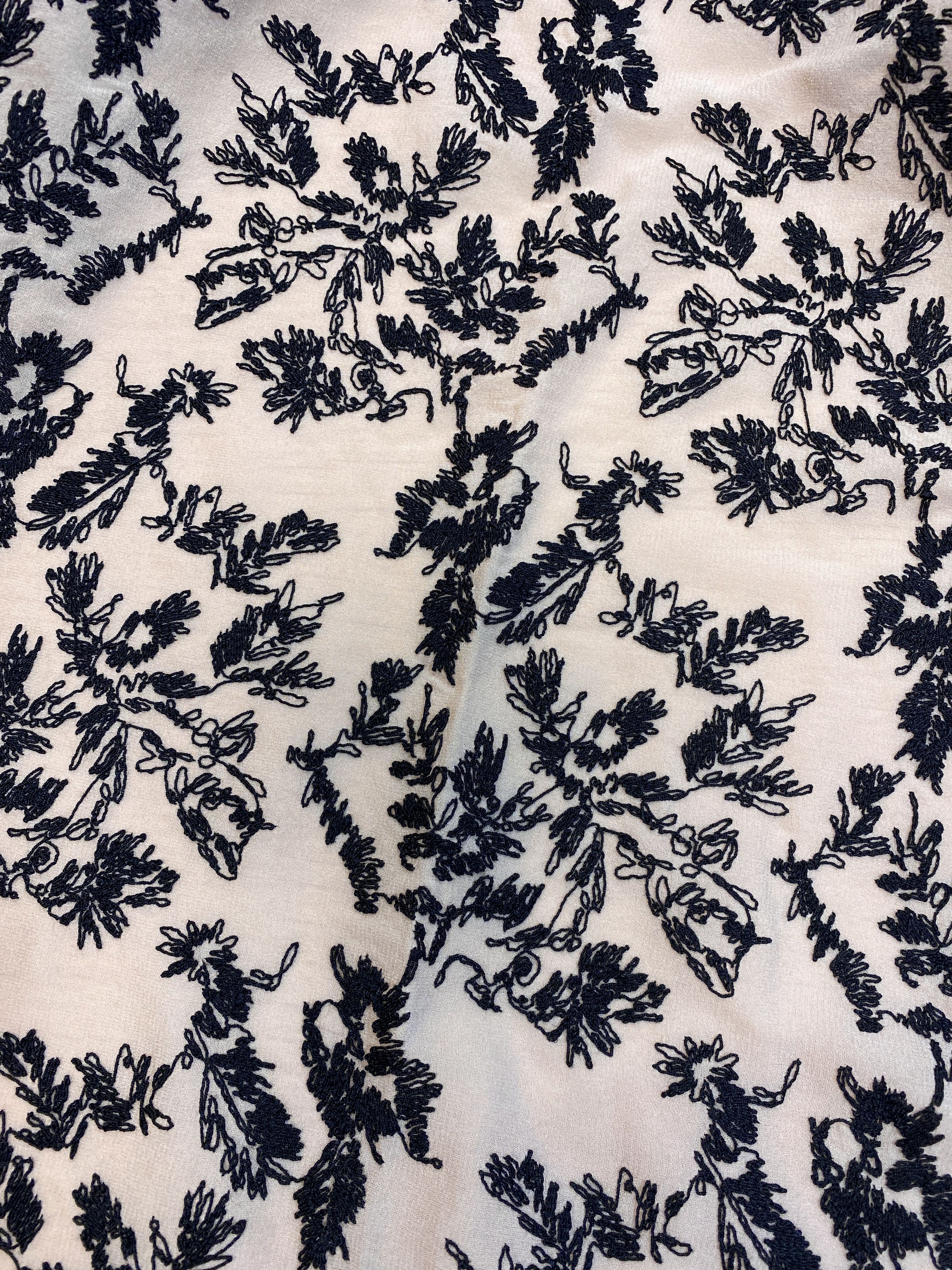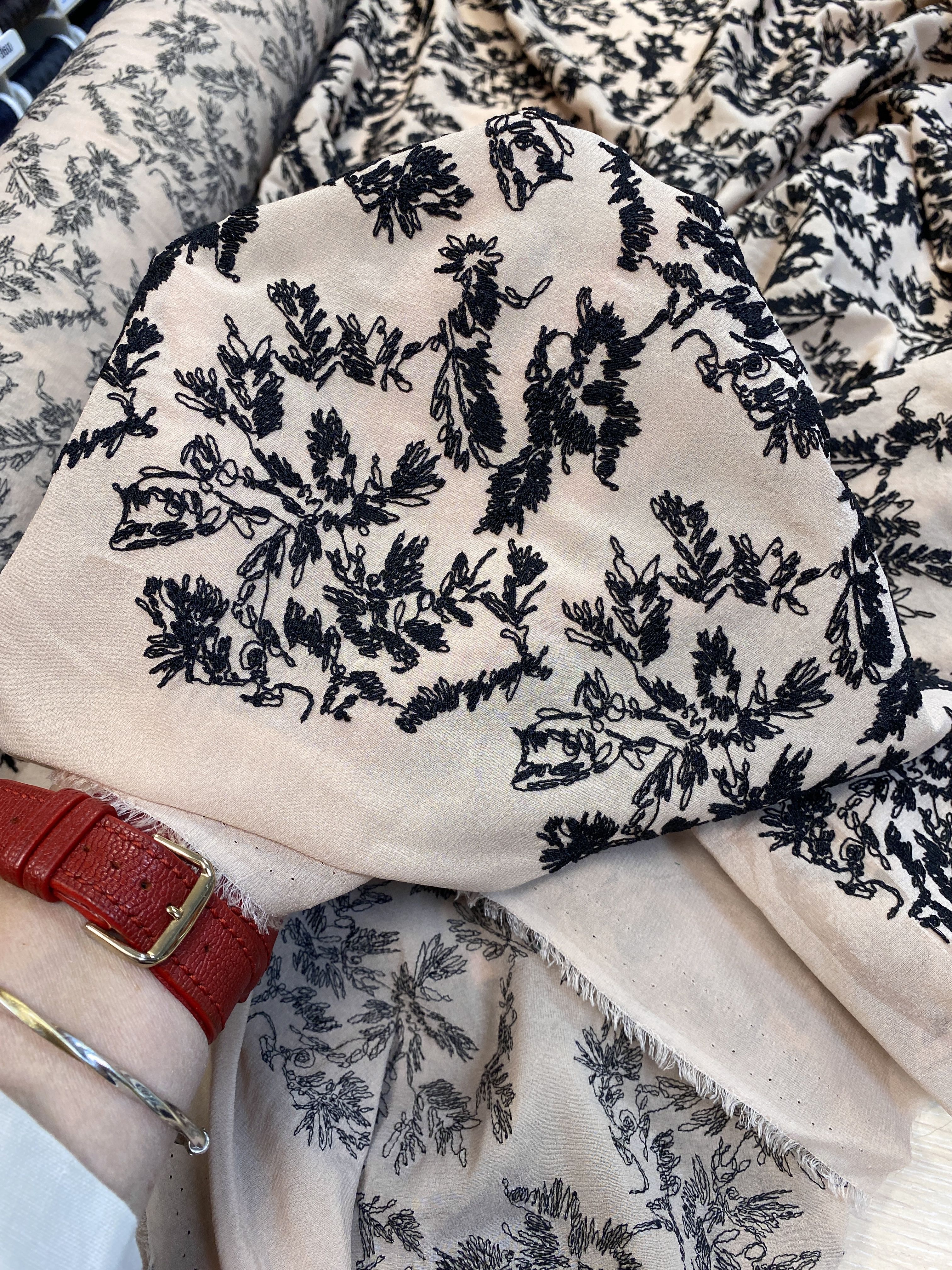 Натуральный 100% шелк-крепдешин с цветочной вышивкой черного цвета от лучшего Итальянского производителя.
