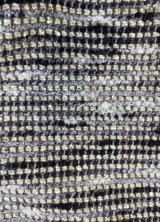 Теплая, прочная и добротная ткань, выполненная из натуральных материалов, включающая в себя переплетения различных цветов и структур.