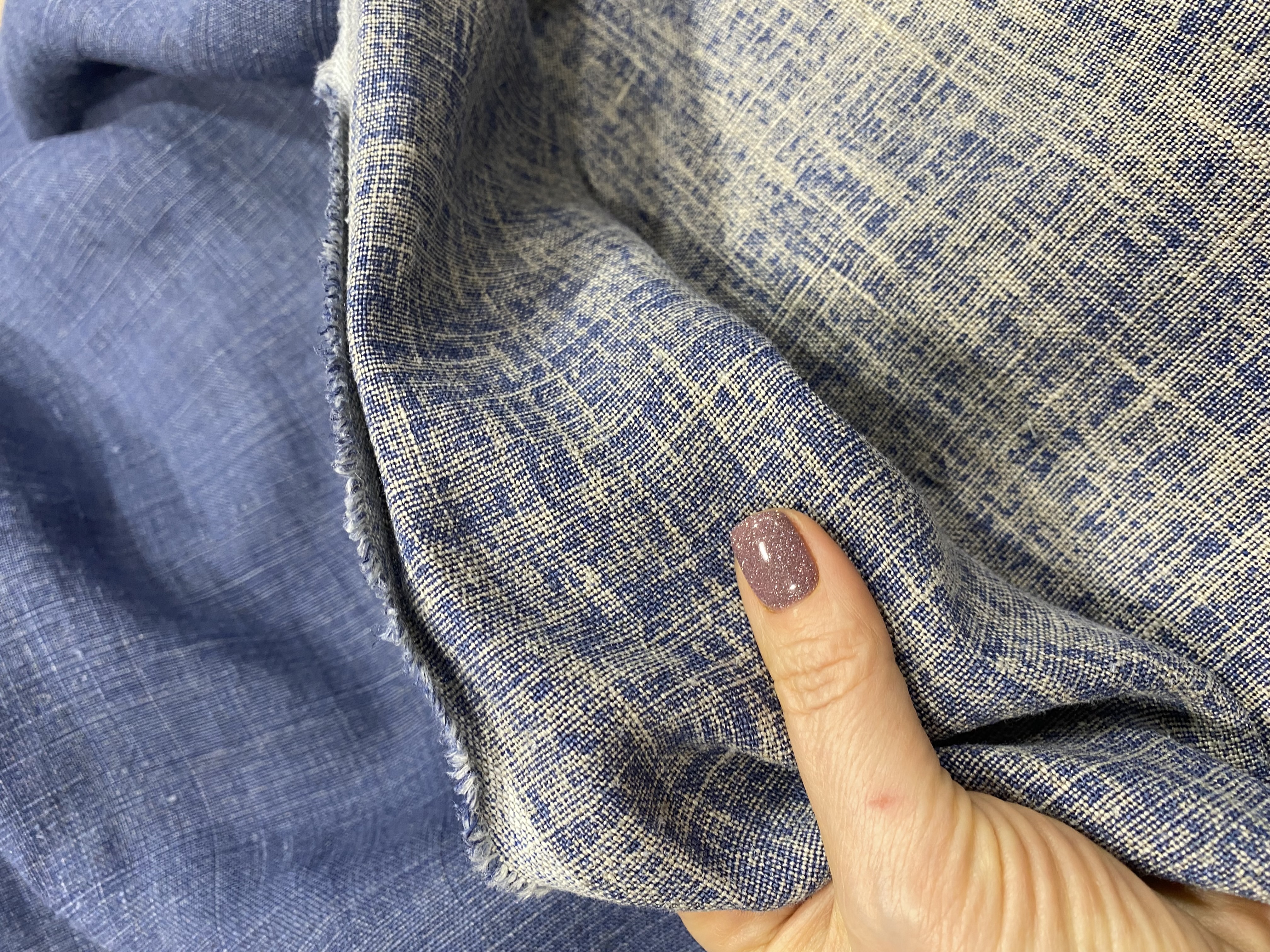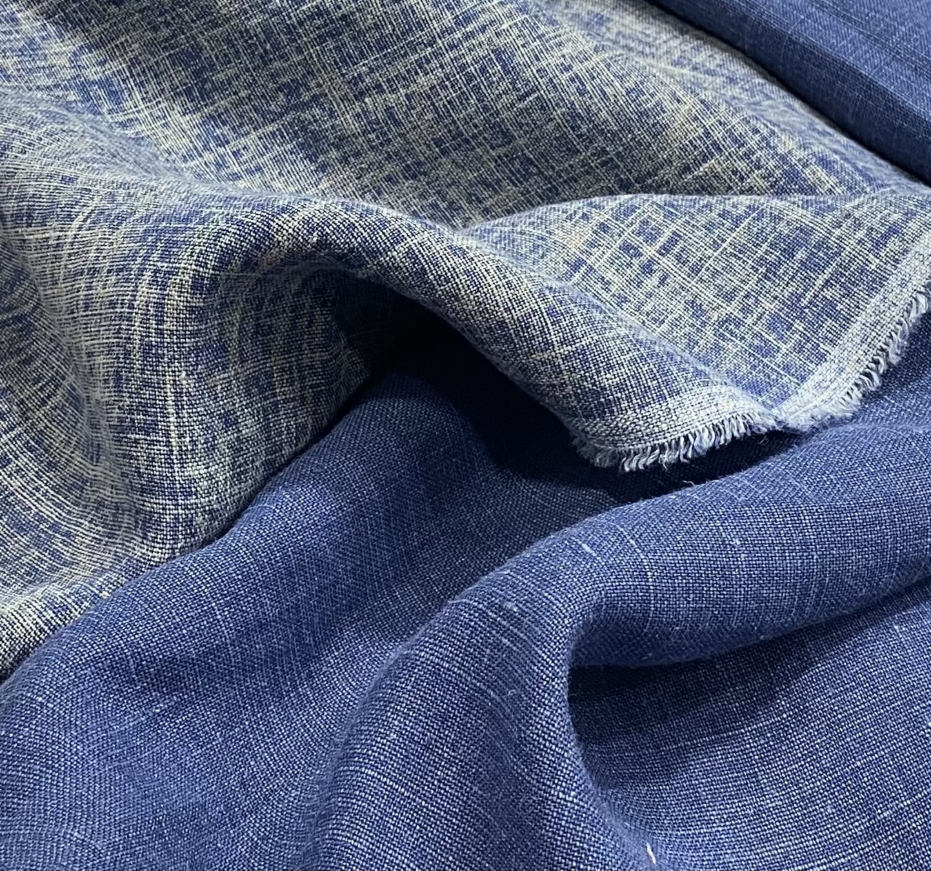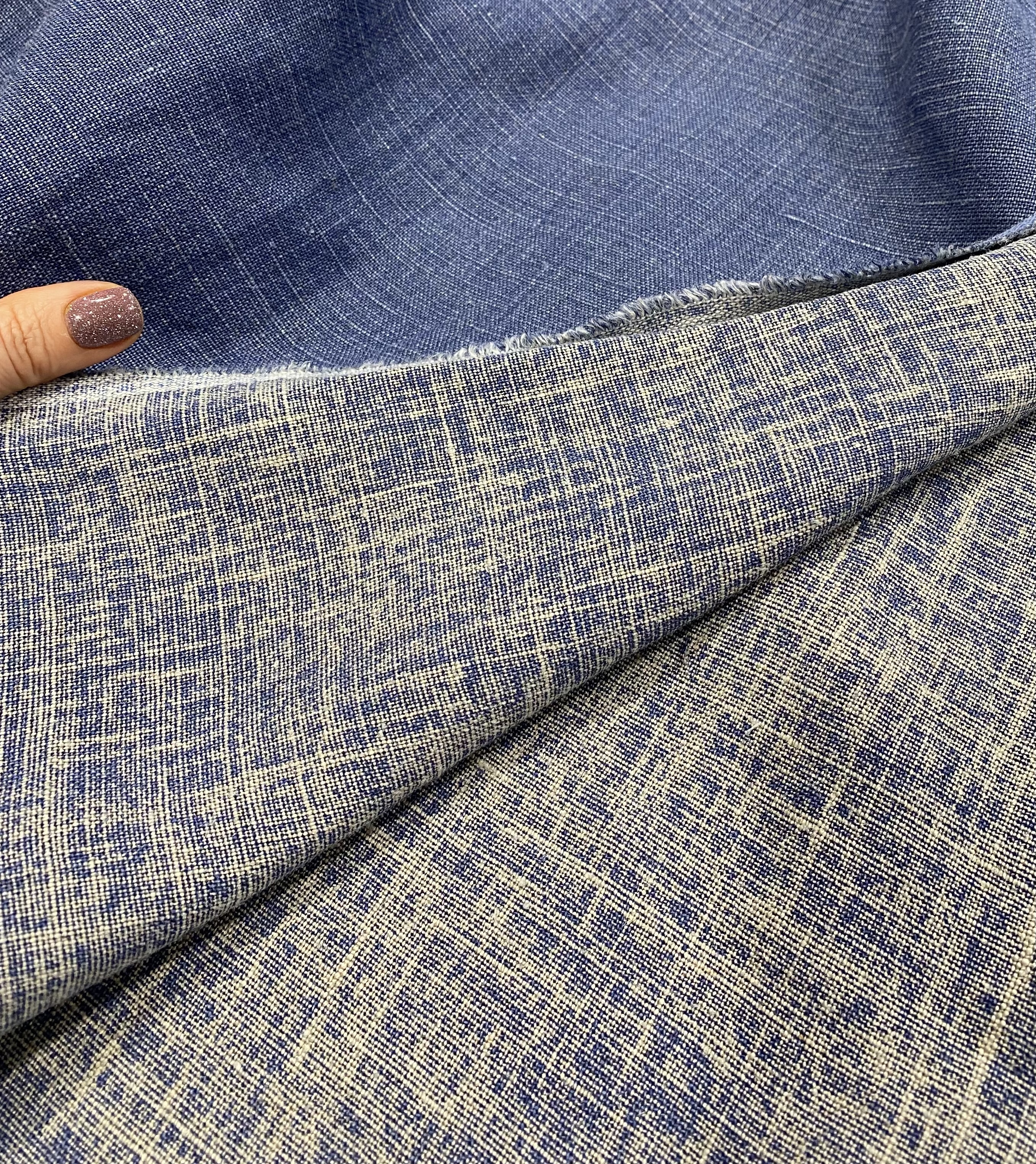 Двустороннее полотно. одна сторона (лицевая -варёнка джинс меланж), вторая сторона - синий классический однотонный.