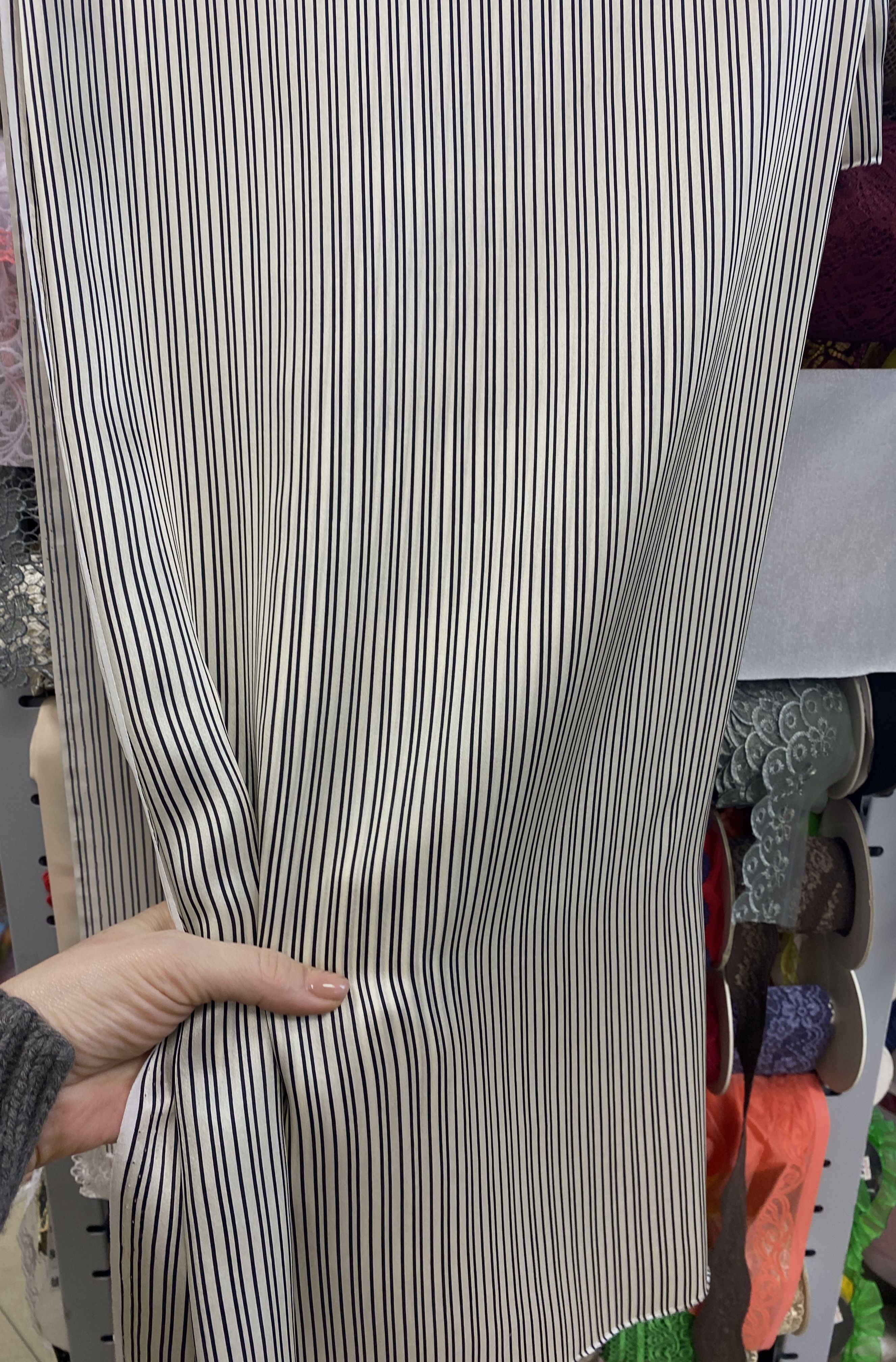 на светло сером фоне узкая черная полоска, отлично подойдет для топов под пиджак, блузок, минималистичных платьев прямого кроя для лета!