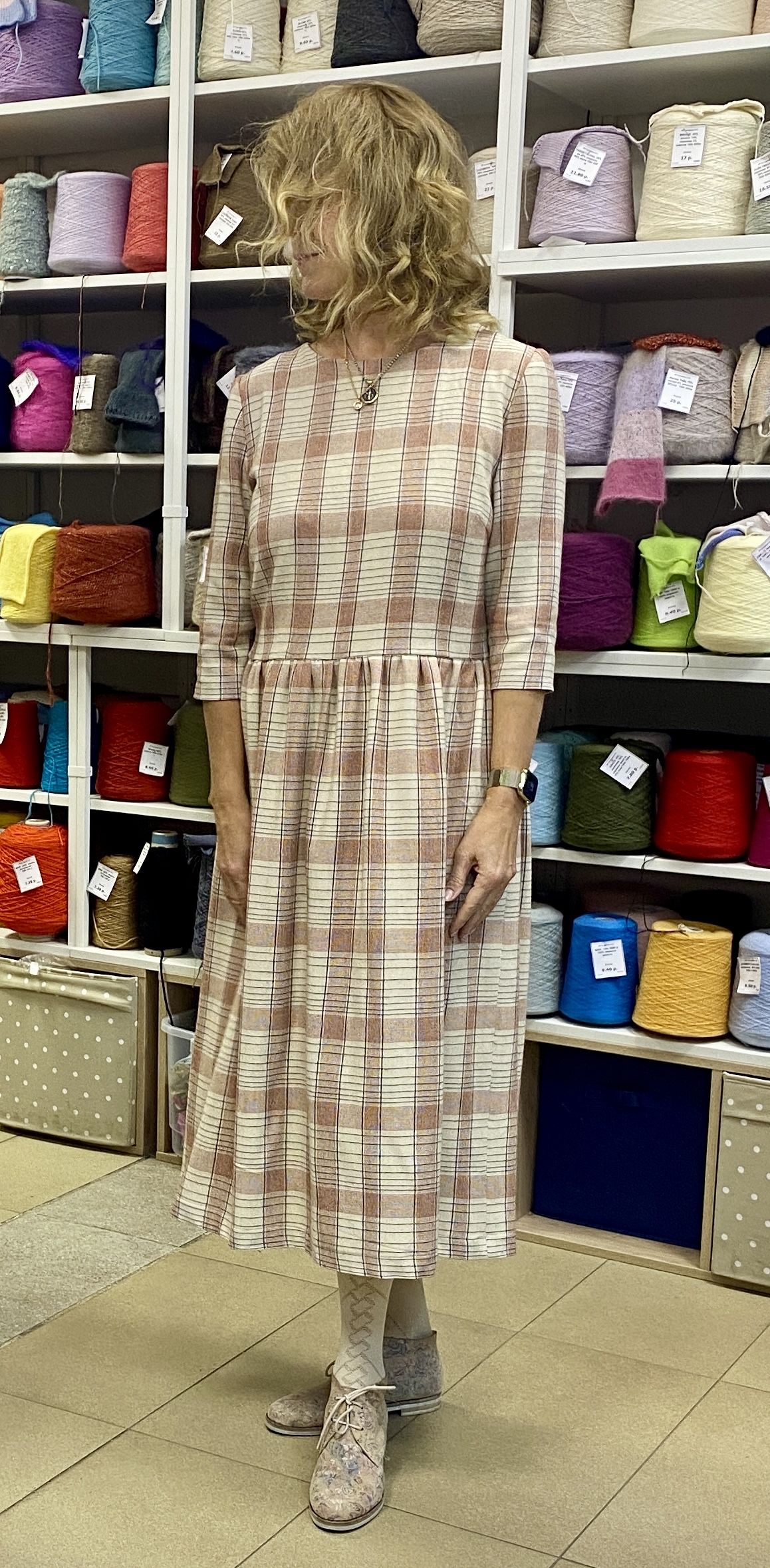 цвет - клетка в нежных пастельных тонах (капучино. бежевый. светло-серый)