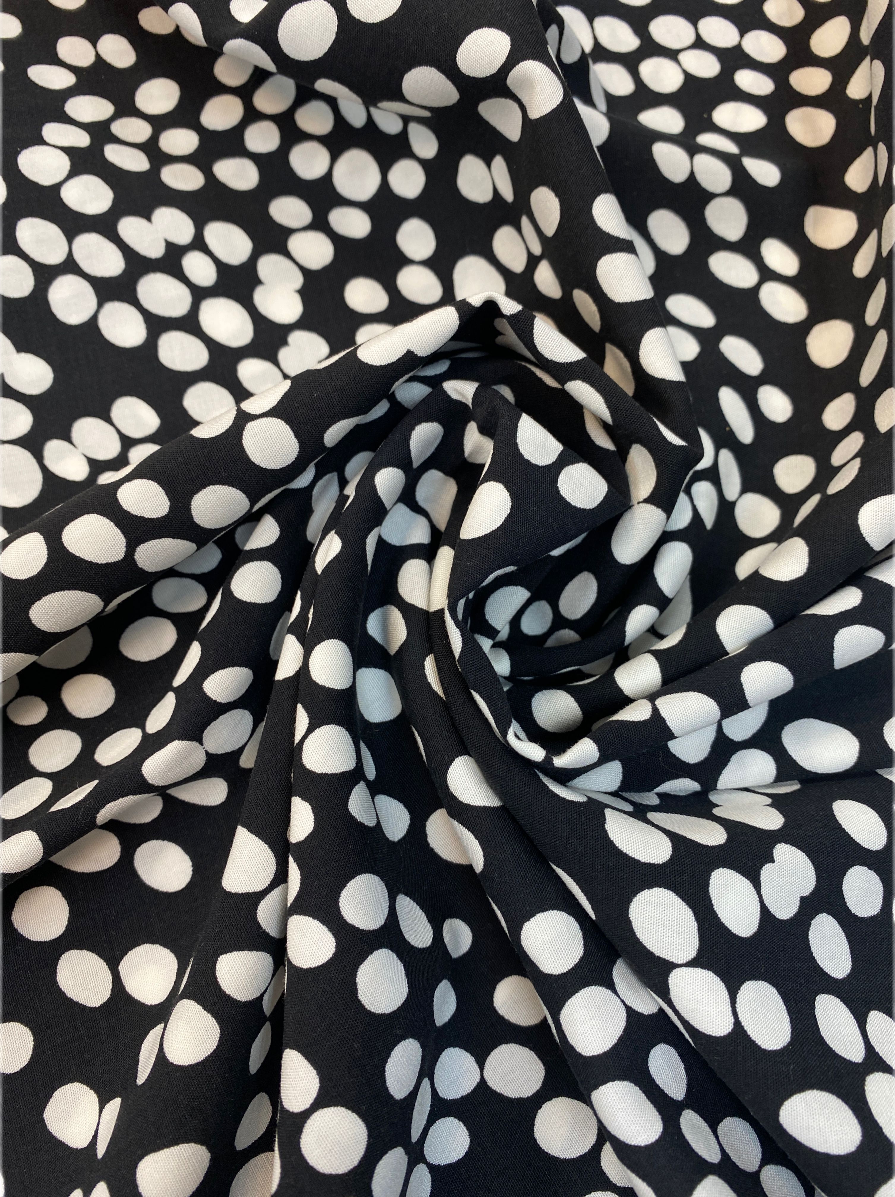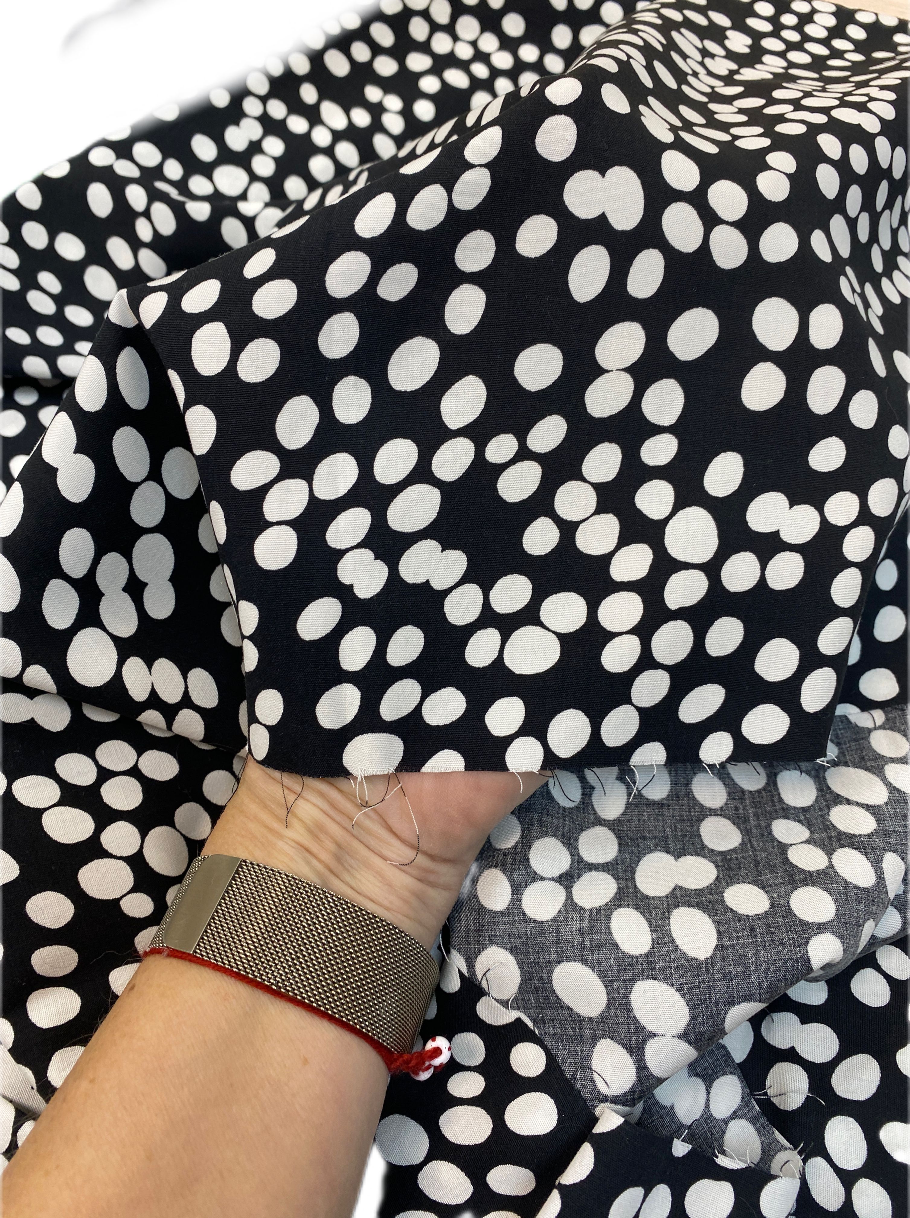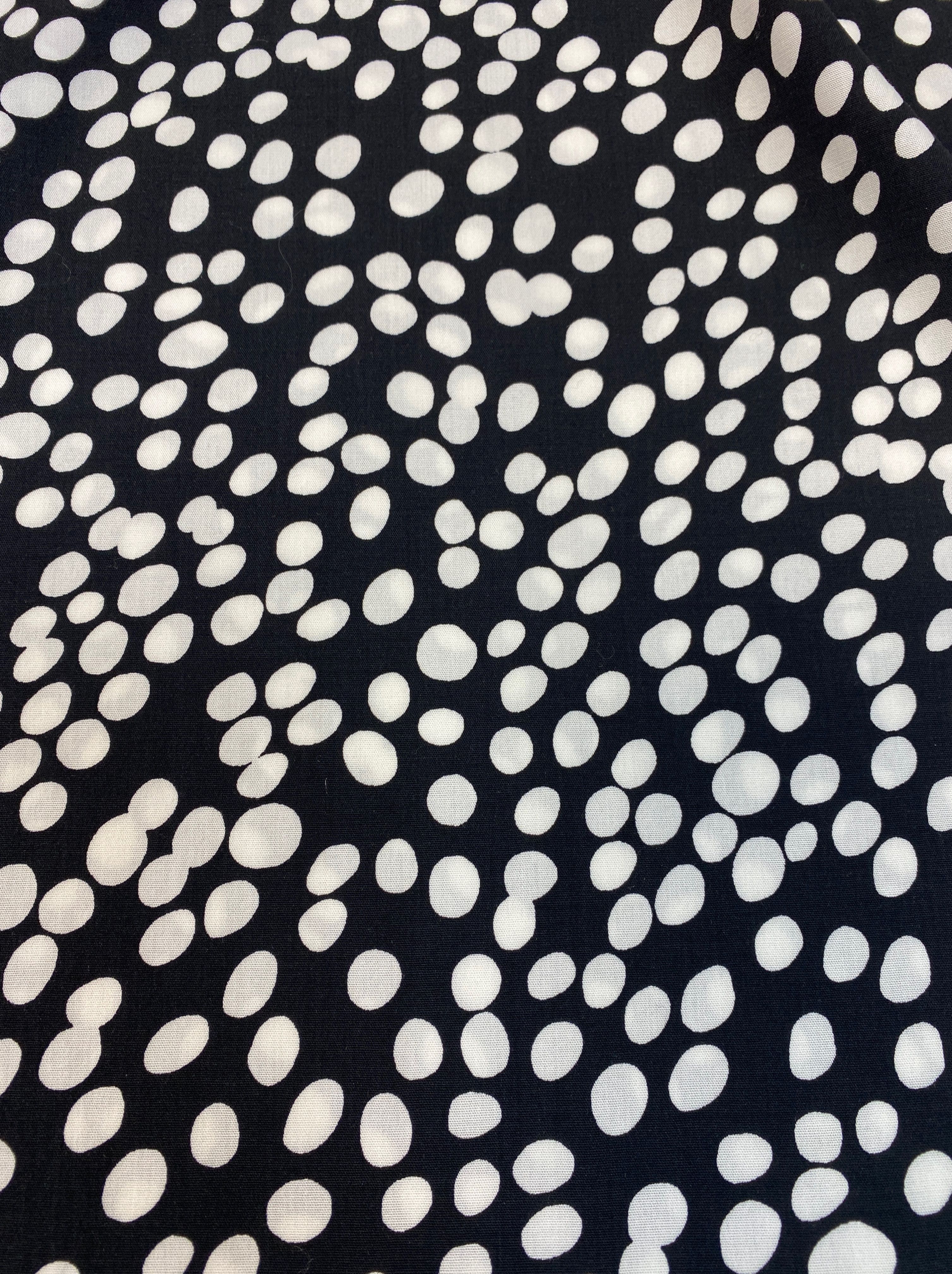 на черном фоне - овальчики и горошины белого цвета разных размеров будто рассыпаны случайно ,,