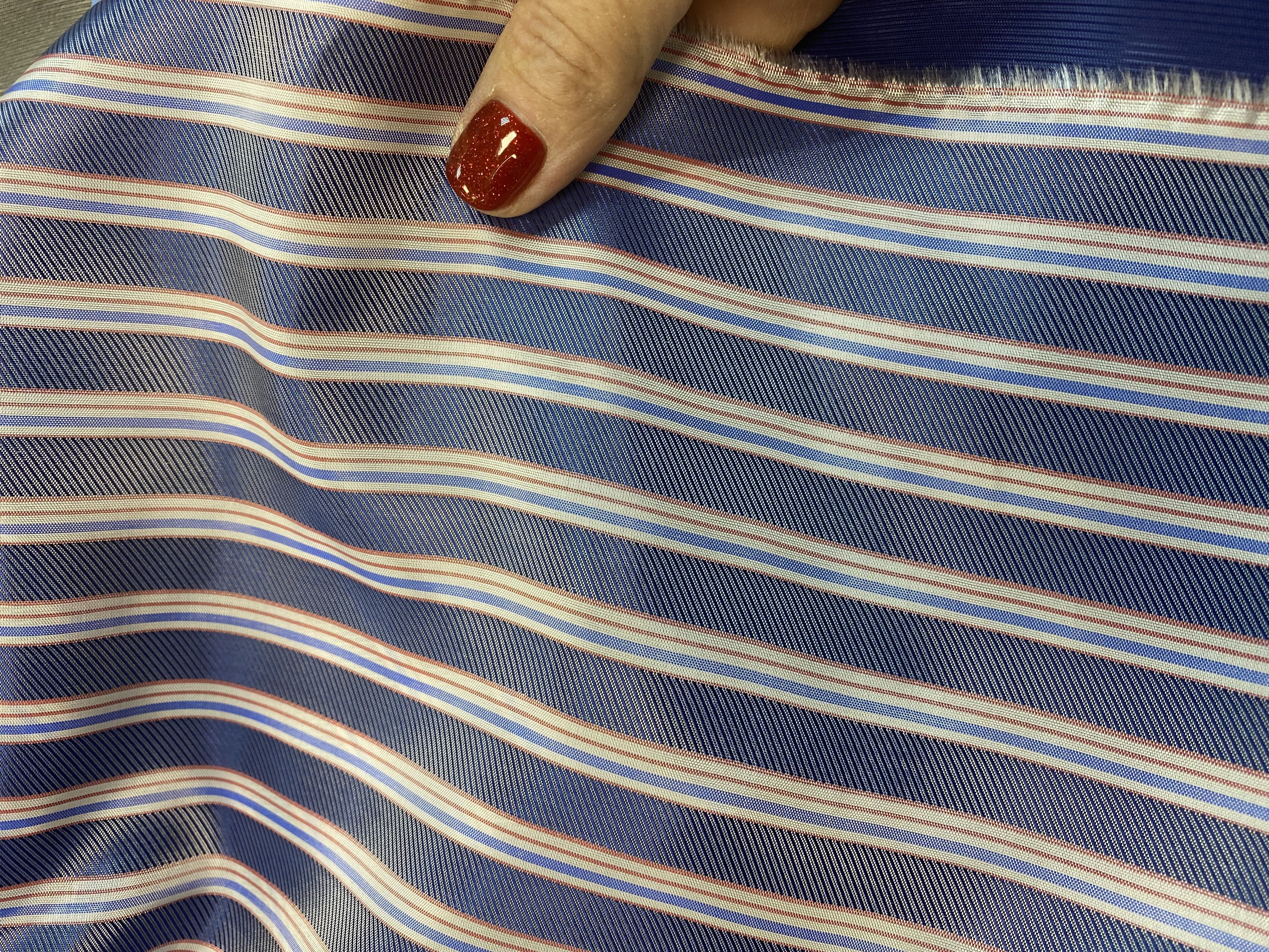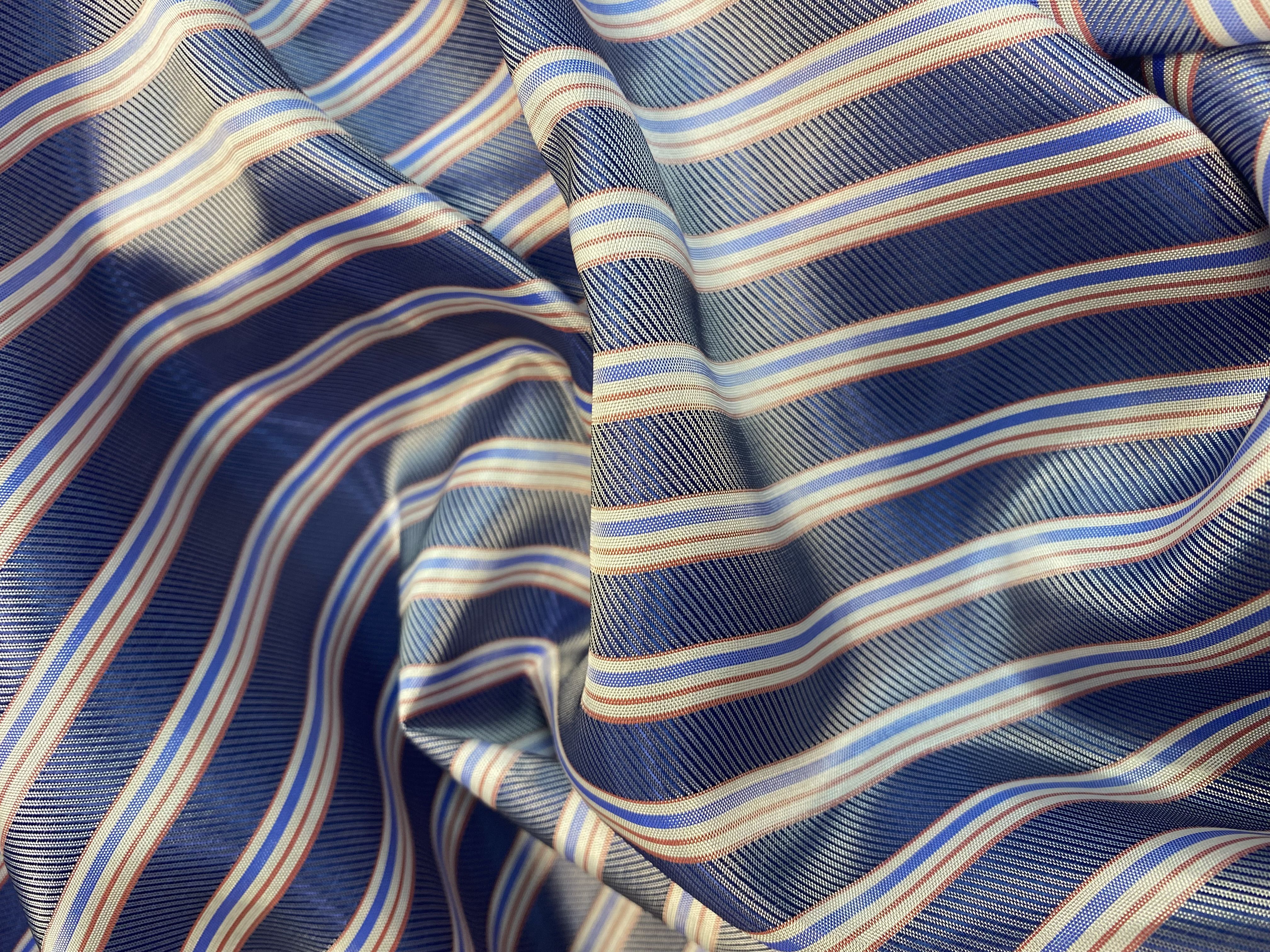 Ткань подкладочная с принтом ( полоска горизонтальная синий-белый-голубой и немного красный)