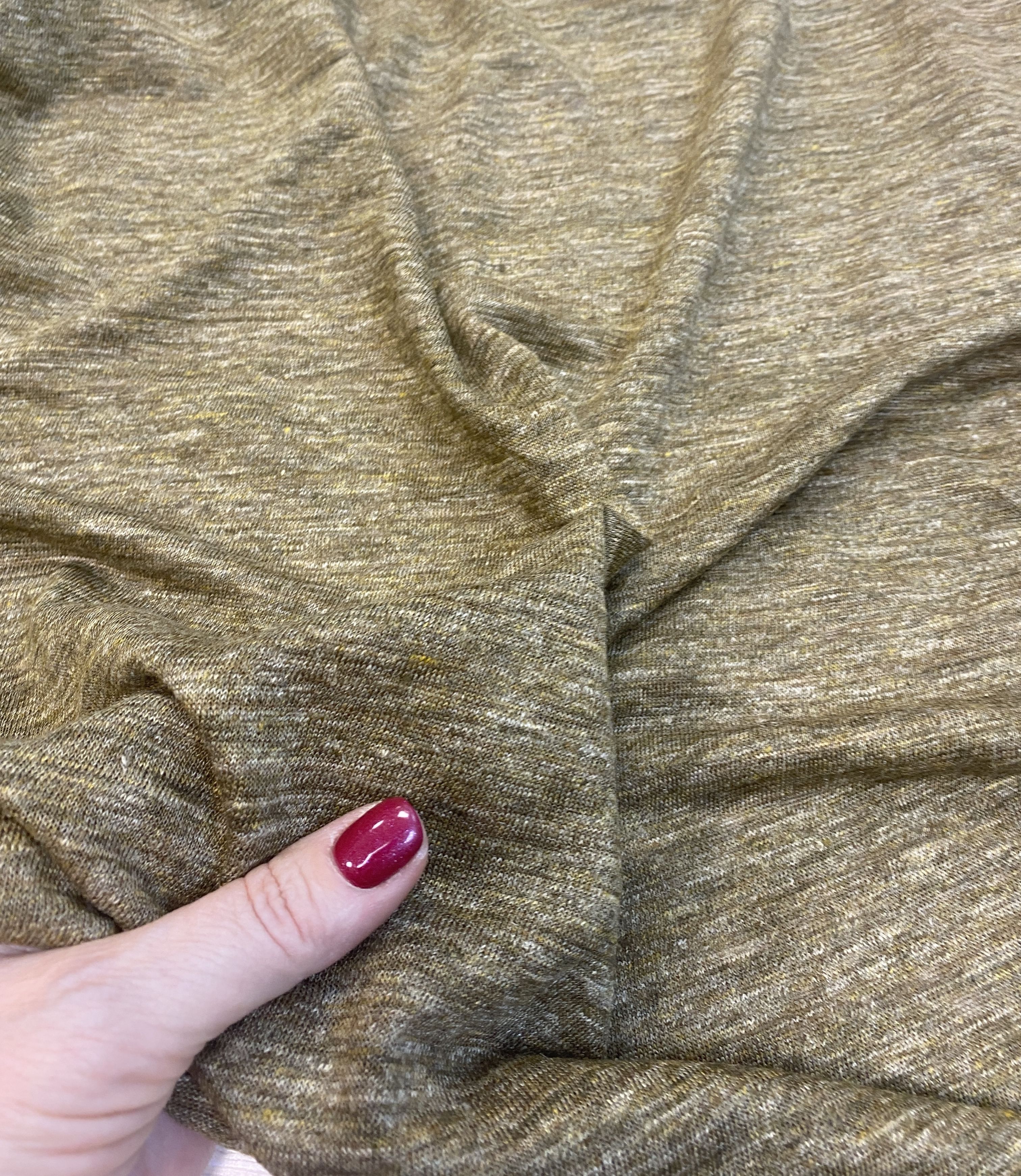цвет классический защитно-коричневый с эффектом неровного прокраса(лен с хлопком окрашиваются несколько по разному) , при этом ткань гладкая и пластичная, отлично драпируется