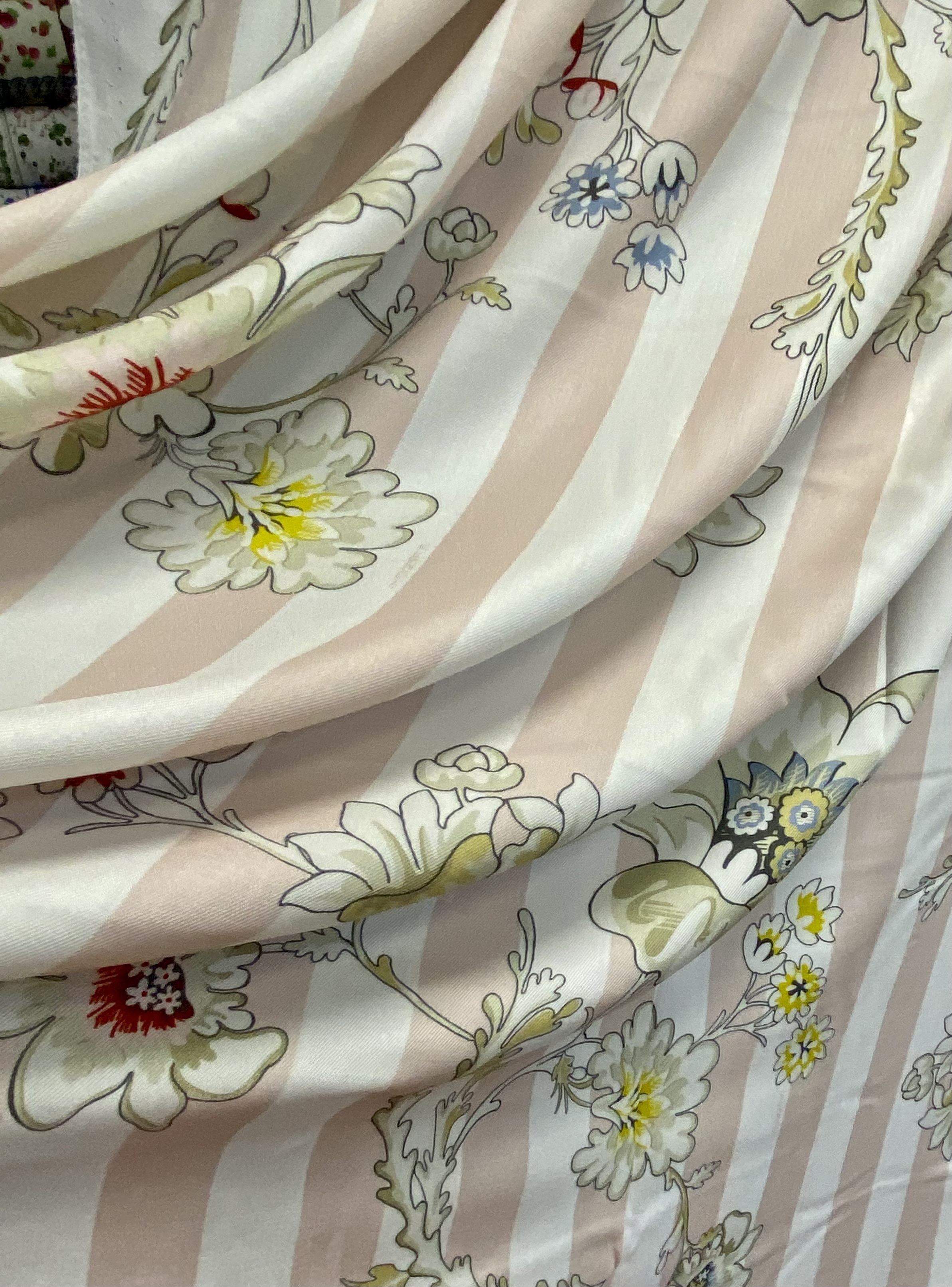 нежная цветочная палитра и не ярко выраженная полоса создают эффект стиля и гармонии.