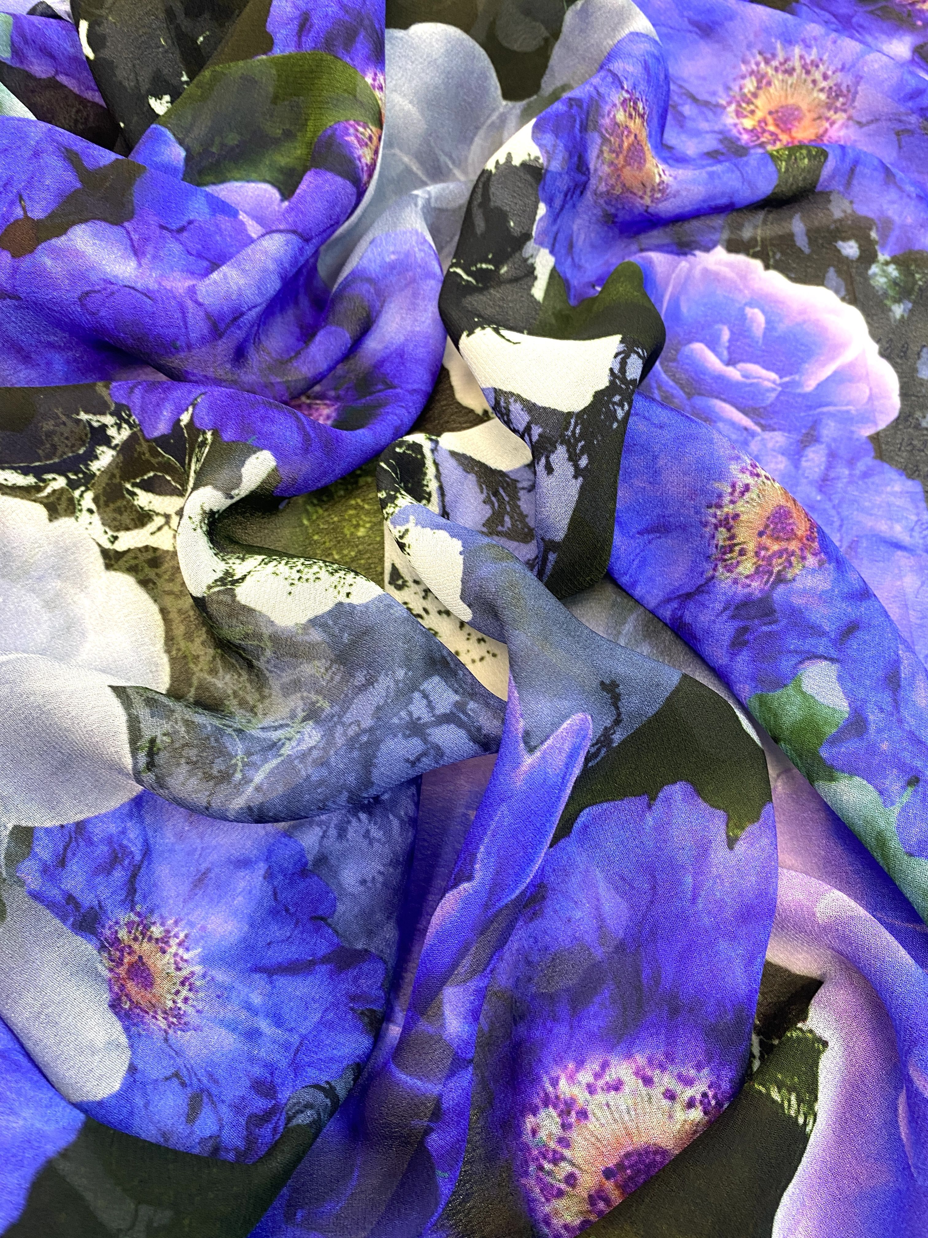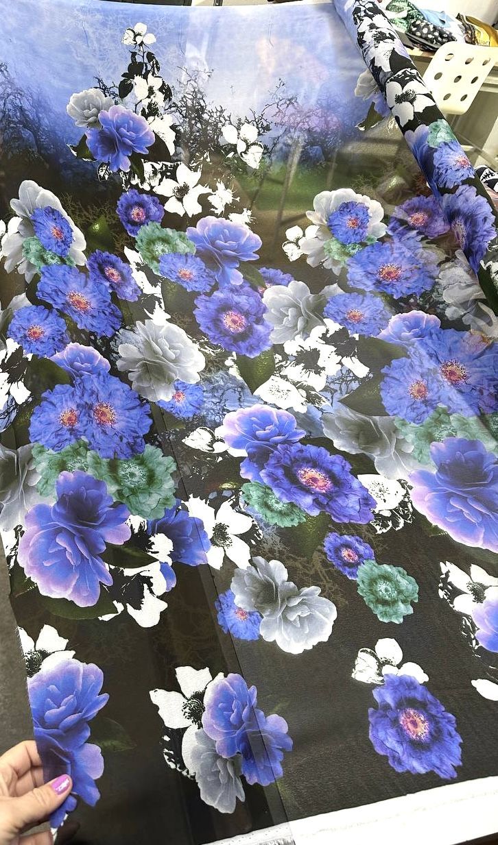Яркие сочные цвета на фоне полупрозрачной основы - делает ткань воздушной. легкой. и одновременно сочной и яркой!