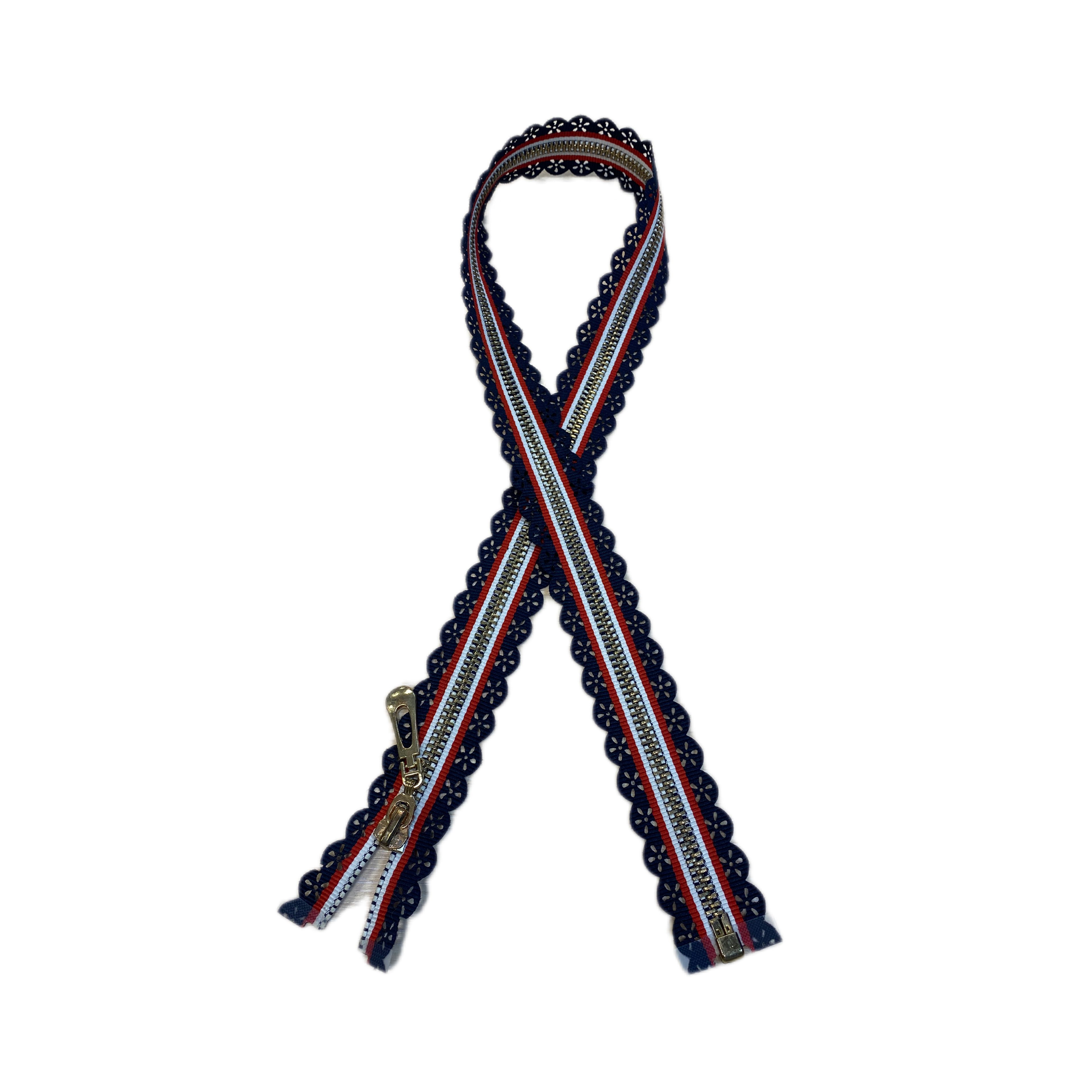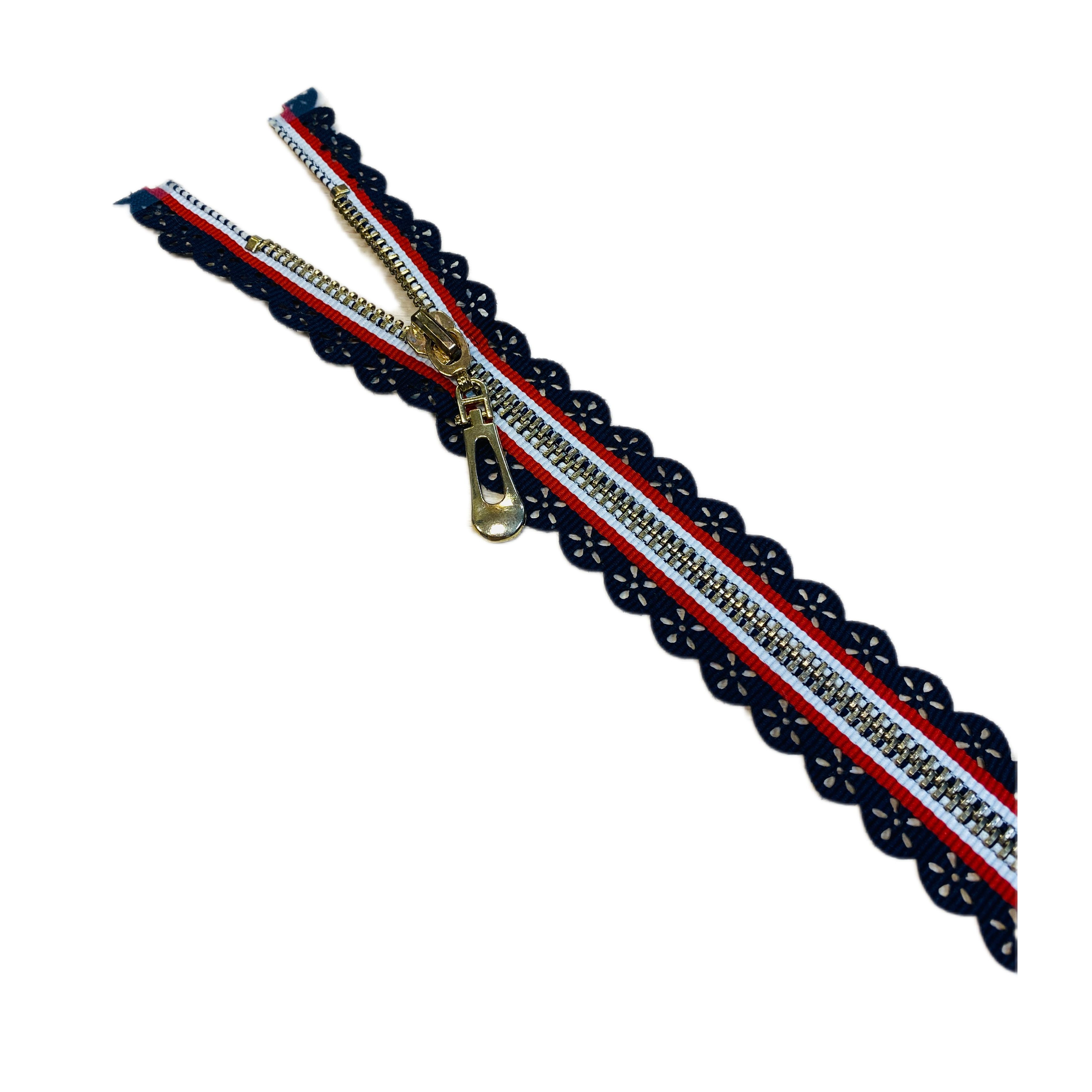 Тесьма - темно-синяя перфорированная основа с полосками белого и красного цветов